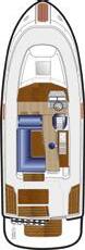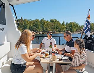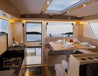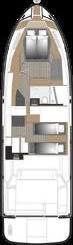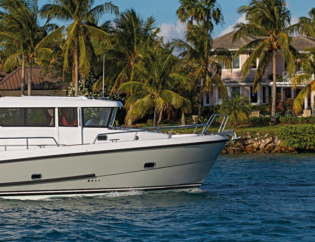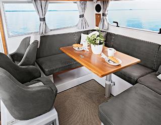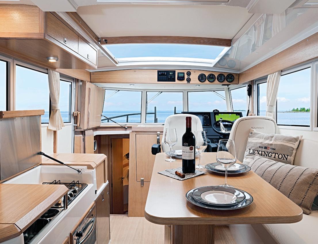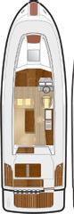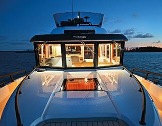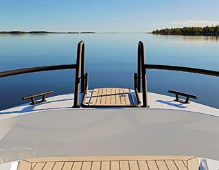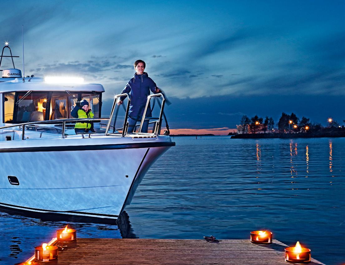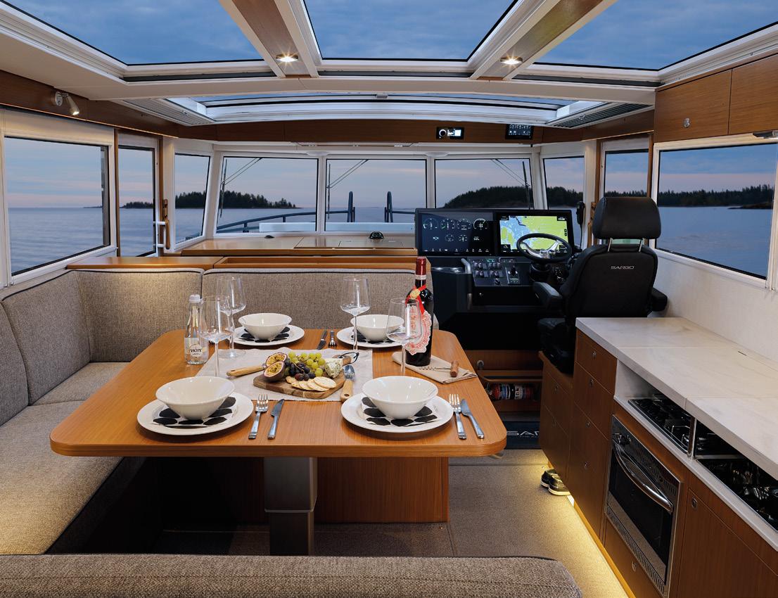 Vaikka sisätilat ovat hyvin suunnitellut, suurimman vaikutuksen tekevät kuitenkin ajo-ominaisuudet. Vakaa runko ja terävä keula leikkaavat aaltoja pehmeästi ja miellyttävästi. Lisäksi polttoaineen kulutus pysyy yhtä alhaisena, oli matkanopeus sitten 15 tai 30 solmua. Voit siis vapaasti valita seurueellesi parhaiten sopivan nopeuden.