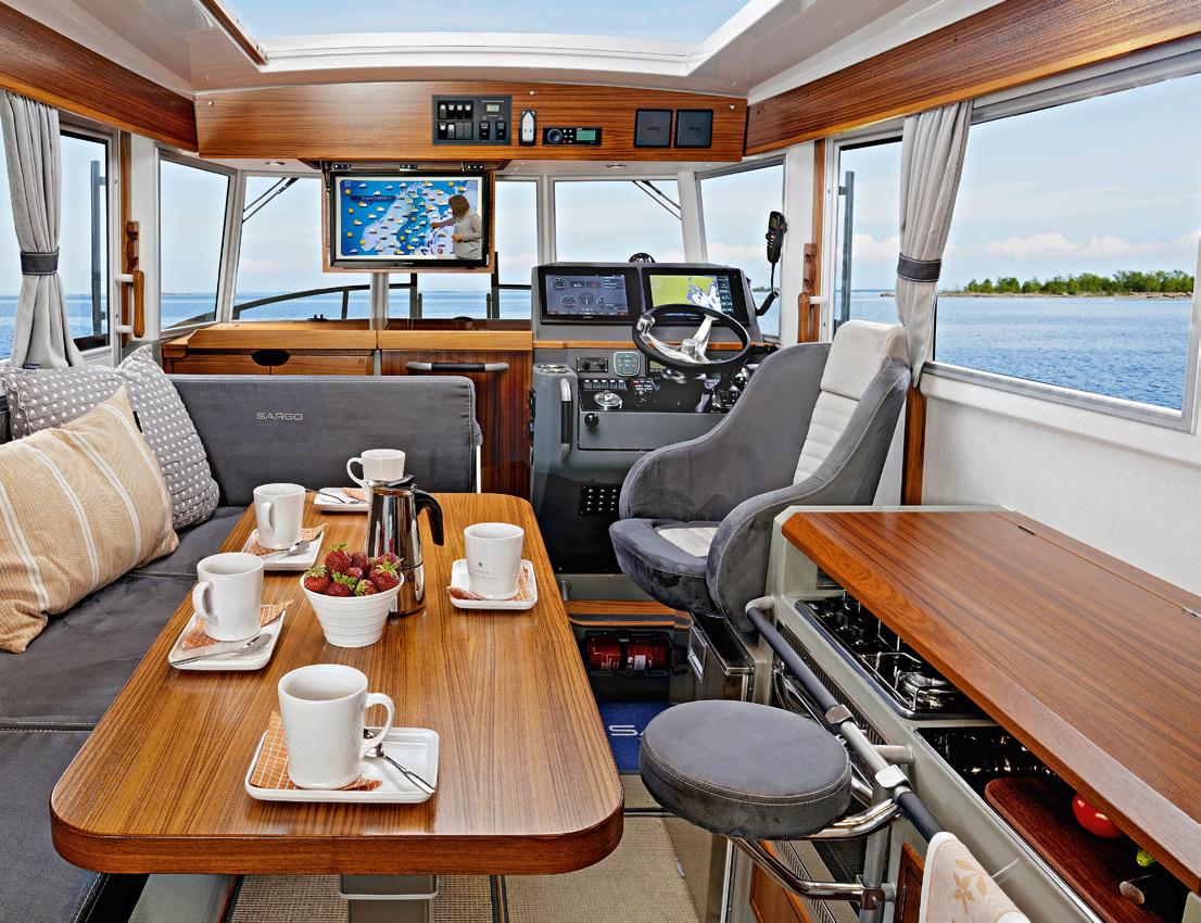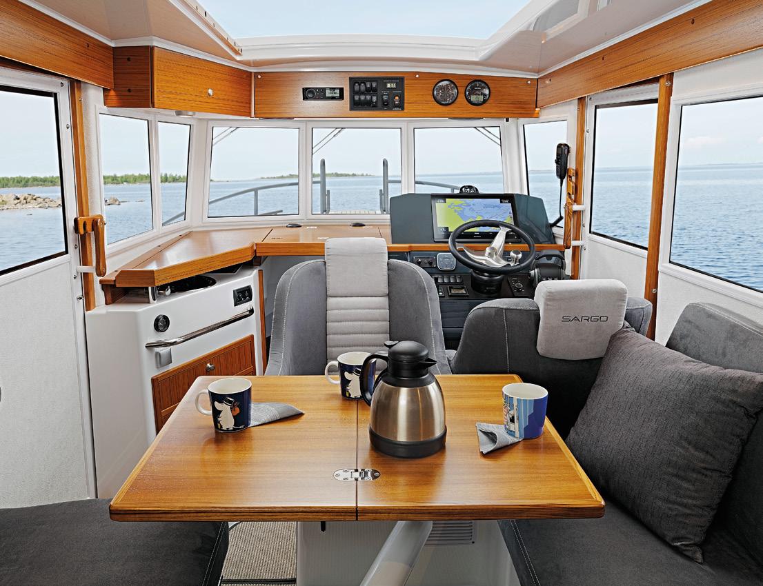 Sporttisuudesta pitävälle SARGO 33 tarjoaa ergonomisen ohjaamon useine kekseliäine ratkaisuineen. Taitettava ohjauskonsoli on tarkoituksenmukainen istuttaessa ja seistäessä. Offshore-ajoistuin ja kaksi upotettua karttaplotteria vakuuttavat kriittisimmänkin kipparin. Ohjaamon ovi sekä mahdollisuus erilliseen porttiin rungon kyljessä takaavat vaivattoman maihinnousun.