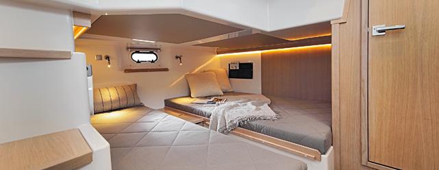 SARGO 33:ssa olemme modernin 3D-suunnittelun avulla hyödyntäneet joka nurkan, mikä näkyy erityisesti hyttiratkaisuissa. Etuhytin riittoisa varastotila, mukava V-muotoinen vuode, wc sekä erillinen suihku muodostavat kokonaisuuden, joka on enemmän kuin tavanomaisissa 33 jalan veneissä. Keskihytissä on makuupaikka kolmelle hengelle ja tilaava vaatekaappi, joka on muokattavissa erilliseksi wc-tilaksi.