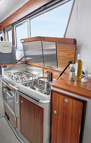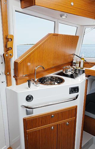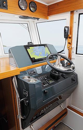 Kaikessa vaikuttavuudessaan 31-jalkaisemme edustaa aitoa, konstailematonta SARGO-konseptia: vankkarakenteista, huipputurvallista ja silti helposti hallittavaa. Molemmin puolin ohjaushyttiä avautuvat liukuovet sallivat rivakan liikkumisen satamamanöövereissä. Kuten muissakin SARGO-veneissä, moottoritilassa on helppo päästä huoltokohteisiin. Kipparia ei voi olla miellyttämättä portaattomasti säätyvä ruorin ja mittariston nerokas yhdistelmä, mikä takaa paremman ajoasennon joko seisoen tai istuen.