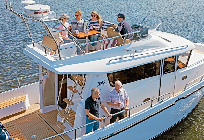 SARGO 36 Fly näyttää häikäisevältä ja se kulkee aalloilla kuin kuningas. Tässä tapauksessa koolla on todellakin merkitystä. Huippumallimme uppouma on hulppeat yhdeksän tonnia, mikä antaa useimmissa merellisissä tilanteissa uskottavuutta. Tyylikäs flybridge on riittävän tilava viidelle aikuiselle, joille avautuu näkymä aavaan horisonttiin samalla, kun tietokoneavusteisesti suunniteltu ’tuulitunneli’ pitää ilmavirran kurissa. 36-jalkaisen Fly:n linjat ovat ylväät, vaikka siinä on sisarmalliensa sargomaista miehekkyyttä.