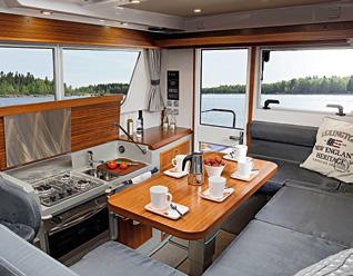 SARGOn sisätilat ja cockpit edustavat pohjoismaista tyylitajua: puhtaita linjoja, testattua ergonomiaa, hillittyjä värejä ja runsaasti fiksuja käytännön yksityiskohtia. Jotkut ratkaisuistamme ovat niin ilmiselviä, ettei niitä välttämättä edes heti huomaa. Esimerkiksi itsepäinen halumme rakentaa yhtenäinen kansitaso hytin ympärille ilman portaan porrasta merkitsee pienempää kompastumisen vaaraa. Yksikään kilpailijamme ei tarjoa samaa.