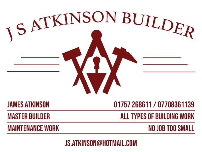 Page 27 July/August 2023 - Issue 129 Selby Journal is brought to you by CreateTVT For all our services visit our website www.selbyjournal.co.uk or www.createtvt.co.uk Call: 01757 710324 Mobile: 07495 972744 www.dkgroundworksltd.com We are a friendly local business, specialising in all aspects of groundworks - from small domestic jobs to large commercial projects