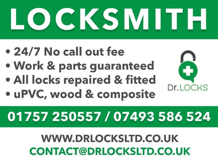Page 24 To advertise contact our sales team on 01757 681380 or email info@createtvt.co.uk Providing Hog Roasts and catering for all occasions in the East Midlands Using the freshest food and the finest ingredients along with over 40 years of experience to bring you the best menu choices available. Our dedicated team can provide great tasting food for any number of people Website: www.dukeofpork.uk Email: admin@dukeofpork.uk 10% OFF when you quote SCJ001 546979 24 HOUR FREE NO OBLIGATION QUOTES Installation, Servicing & Repairs Boilers, Cookers & Gas fires Landlords Certificates Central Heating Systems Power flushing All Kitchen appliances plumbed. Taps & leaks Complete Kitchen & Bathroom Design & Installation Wall & Floor Tiling NO JOB TOO SMALL 01757 611326 / 07867693111 www.langdaleplumbingservices.co.uk email: langdaleplumbingservices@hotmail.co.uk 642 542 SELBY Trusted Local Locksmiths UPVC DOORS & WINDOW REPAIRS LOCK OUTS / LOCK CHANGES SECURITY UPGRADES BURGLARY REPAIRS 01757 642 542 NO CALL OUT FEE All Work Guaranteed SELBY Trusted Local Locksmiths UPVC DOORS & WINDOW REPAIRS LOCK OUTS / LOCK CHANGES SECURITY UPGRADES BURGLARY REPAIRS 01757 642 542 NO CALL OUT FEE All Work Guaranteed NO CALL OUT FEE - ALL WORK GUARANTEED 01757 642 542 Trusted Local Locksmiths UPVC Doors & Window Repairs Lock Outs / Lock Changes • Security Upgrades and Burglary Repairs Areyouworried aboutyourdrinking? Confidential,professional &friendlyalcoholsupport. Haveyoubeendrinkingmore? Hasthetimeofthatfirstdrinkgotearlier& earlier?Maybeyou'vetriedtostopyourself? Maybeit'stimeforsomeprofessionalhelp? progress-sobriety.com