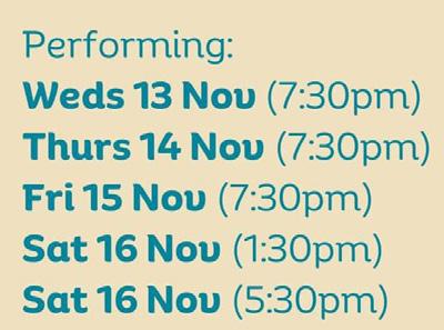 The show is on the evenings of 13th- 15th November, with a matinee and an early evening show on Saturday 16th November. Tickets are £12 per adult and £10 per child.