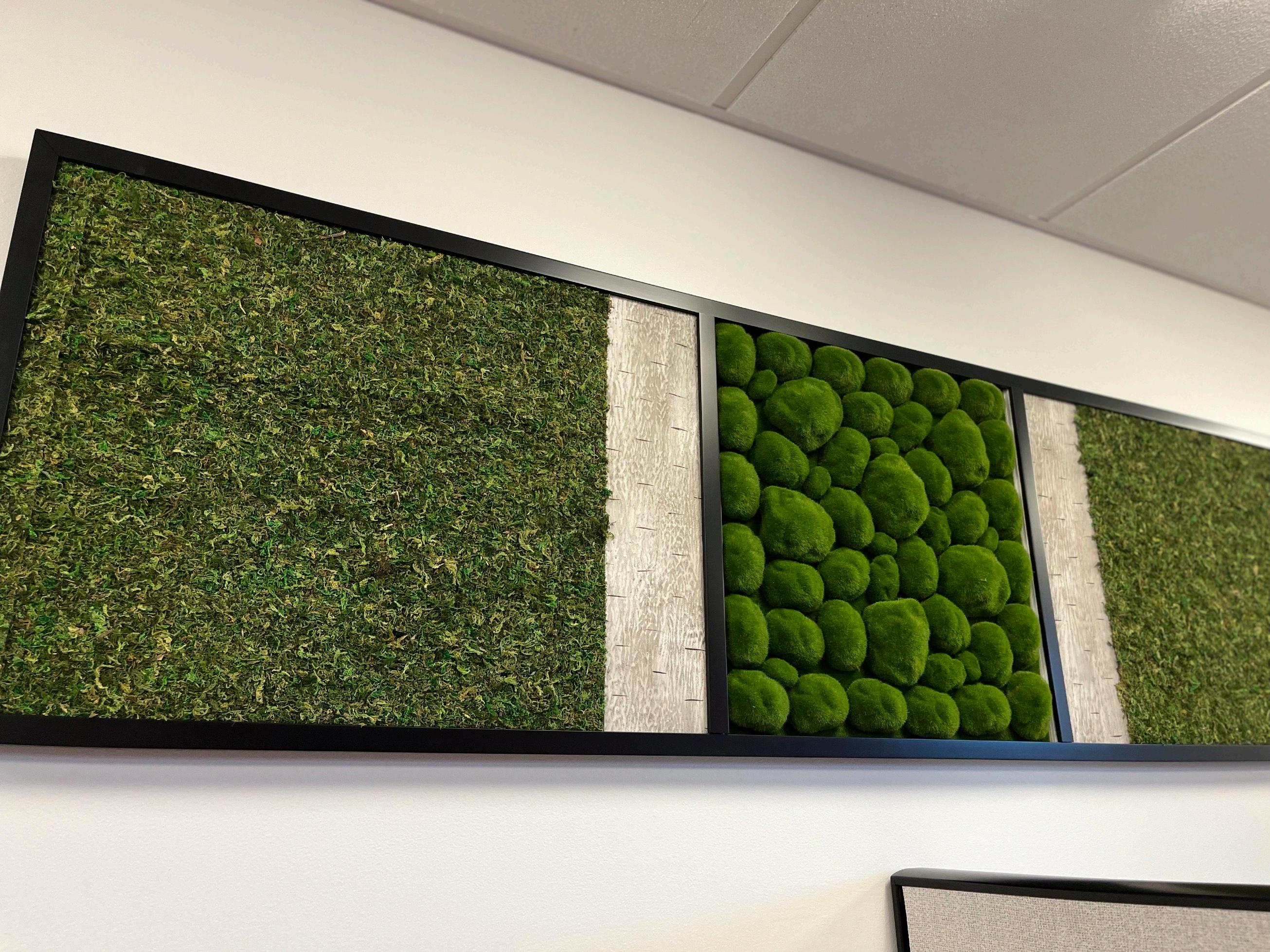 We bring nature indoors through text based greenery and full-scale green walls. Options for Faux or real plants