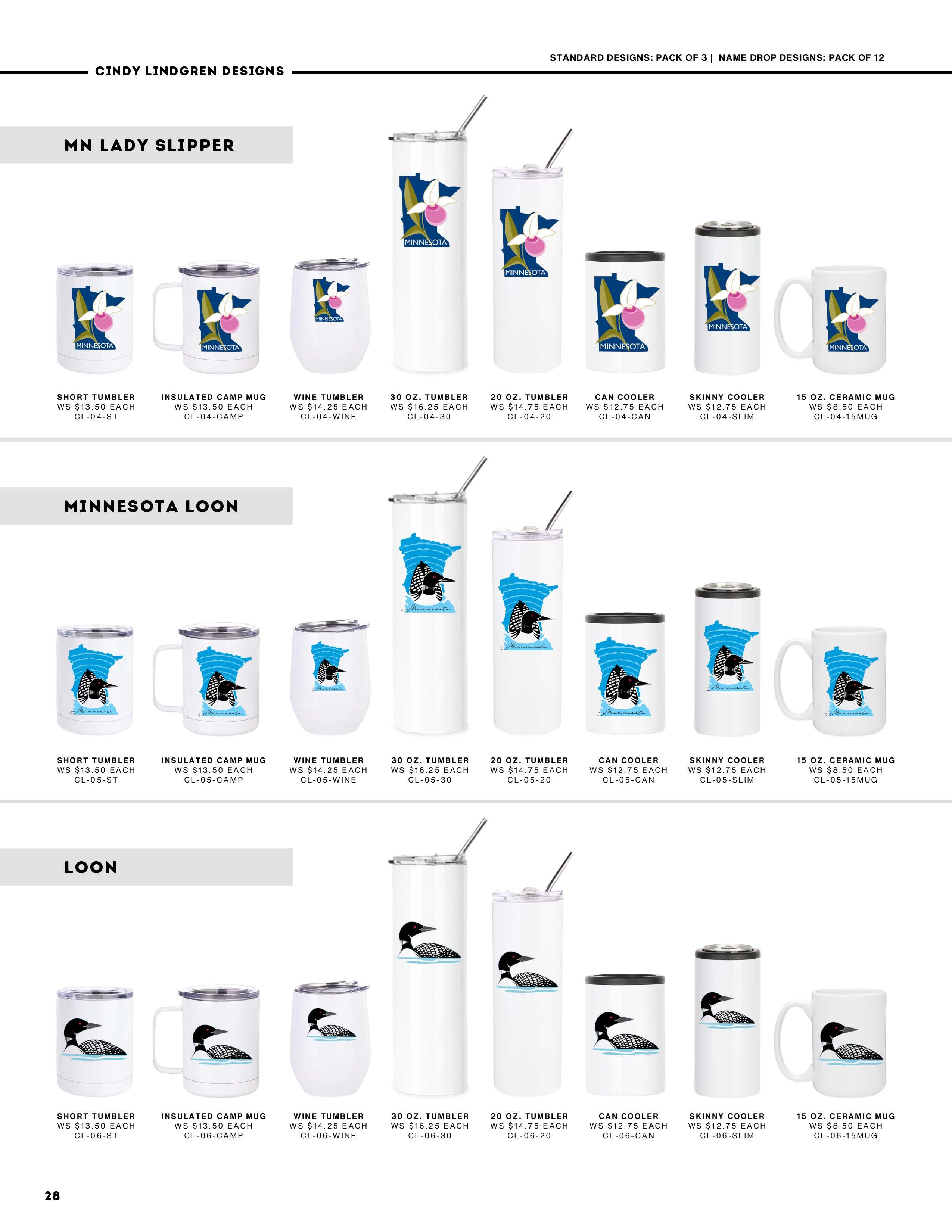 30 OZ. TUMBLER: $16.25 EACH (WS) I 20 OZ. TUMBLER: $14. 75 EACH (WS)