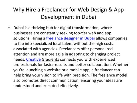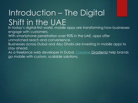 At Creative Gradientz, we specialize in offering top-notch freelance web development services in the UAE, tailored to meet your unique business needs. We ensure custom website development, responsive design, e-commerce solutions, web maintenance & support all at affordable rates.