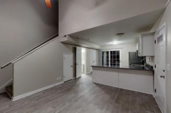 Dunbar Town Homes has 2 bed 1.5 bath renovated townhomes with stainless steel appliances, clean white backsplash, white cabinets, new countertops, fresh repost grey wall color and updated new flooring.