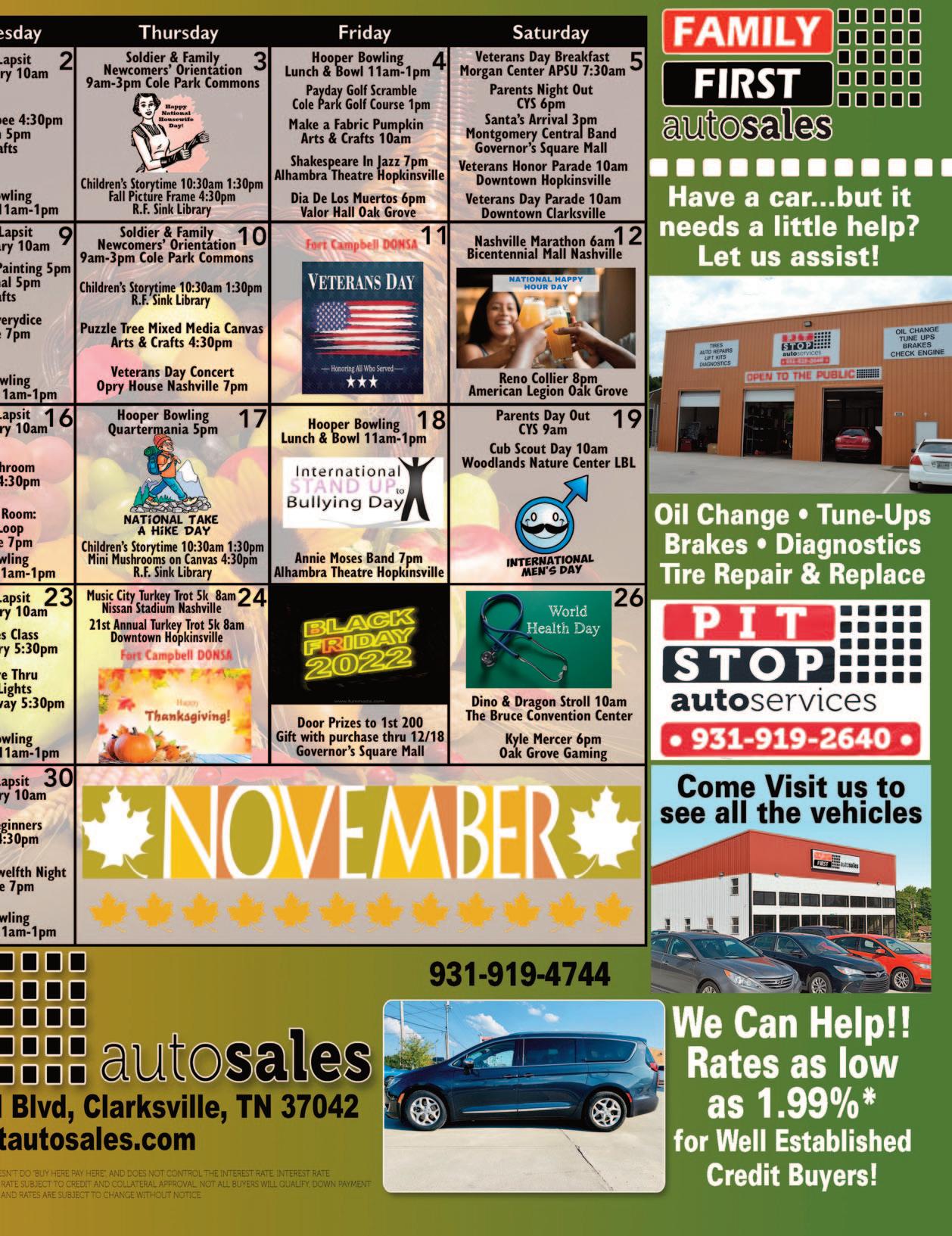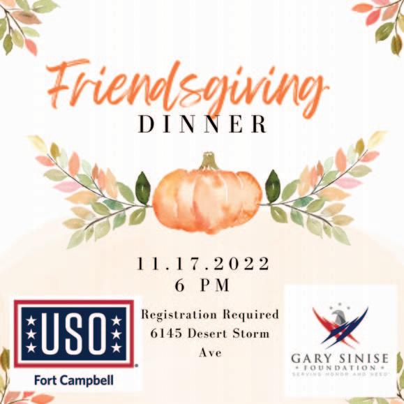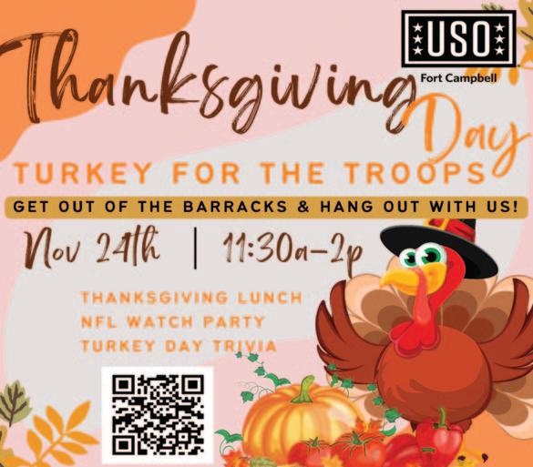 For more information about upcoming programs, go to our website: https://fortcampbell.uso.org/events All USO events are for our Active Duty/Guard/Reserve Service members and their families and are offered FREE of charge. The USO says the events are their way of saying thank you to them for their service. November Events