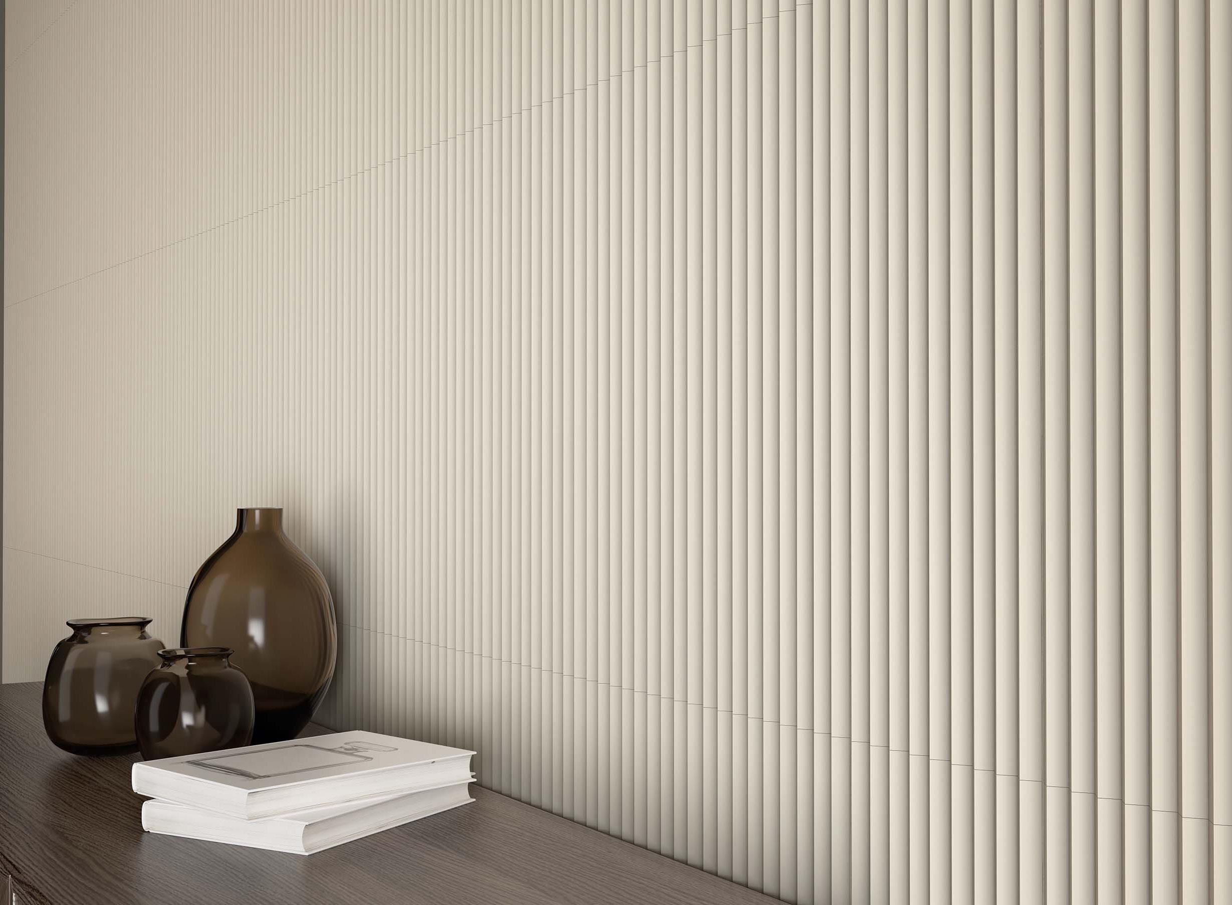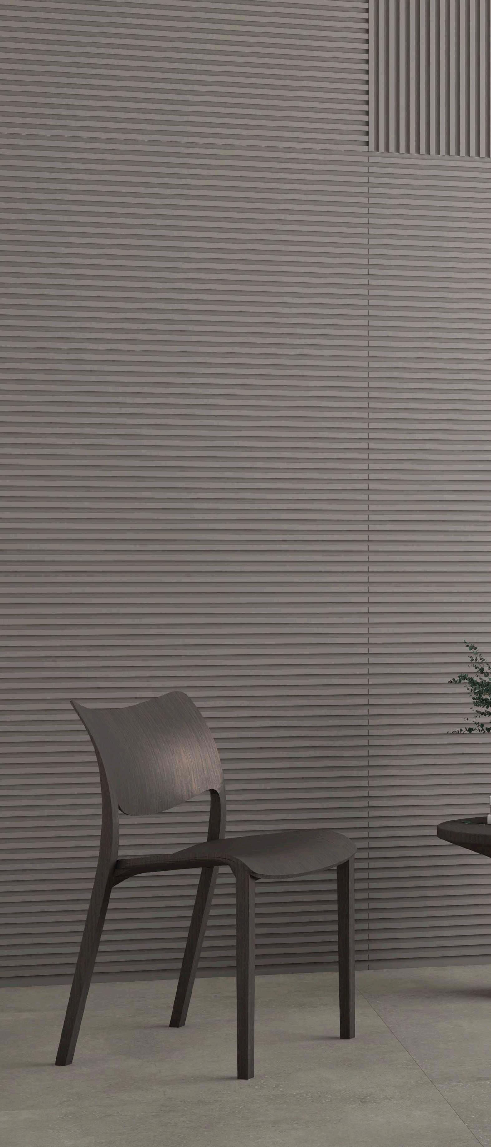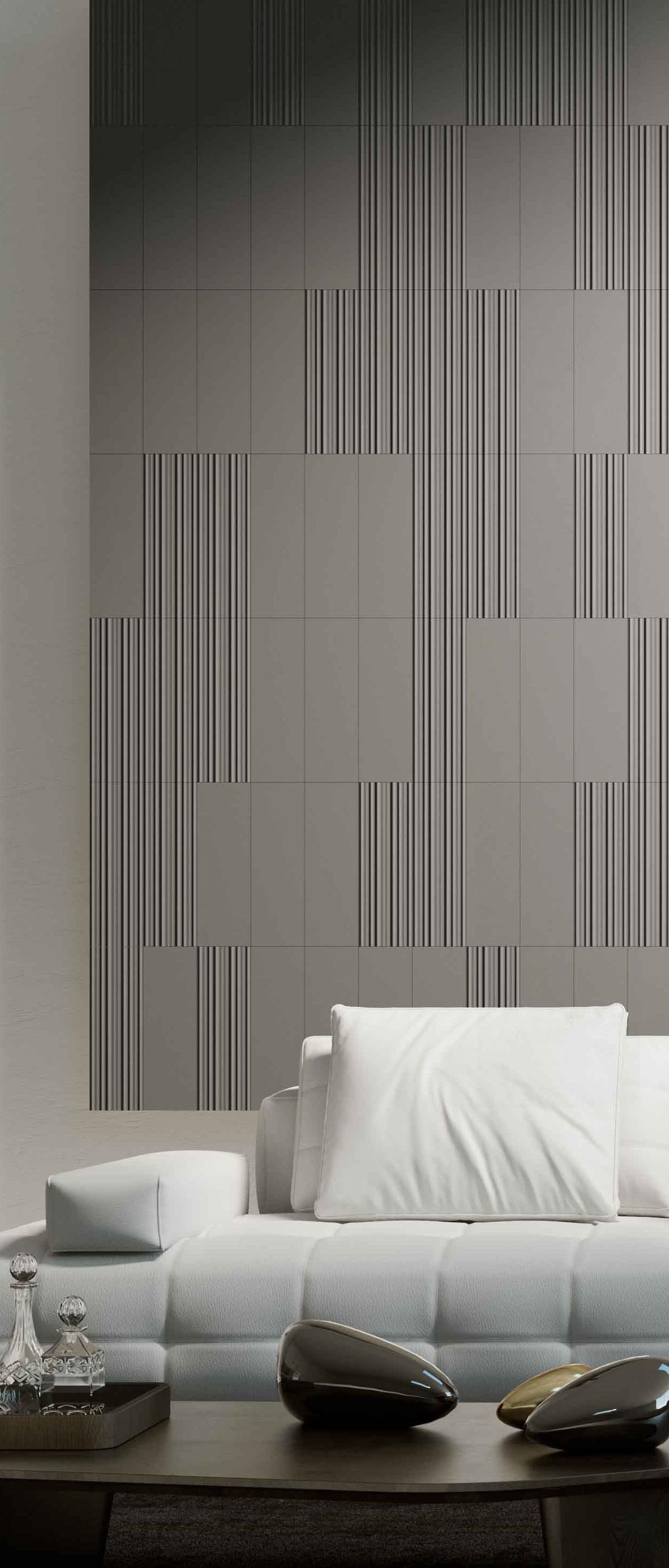Cast porcelain tile draws inspiration by combining ageold artistry with contemporary design. Its minimalistic yet expressive contours create an ever-evolving visual experience influenced by varying light, shadow, and perspective. Shaped with a keen eye for detail, from texture and form to its hues, each piece tells its own story.