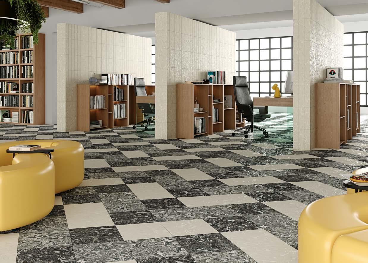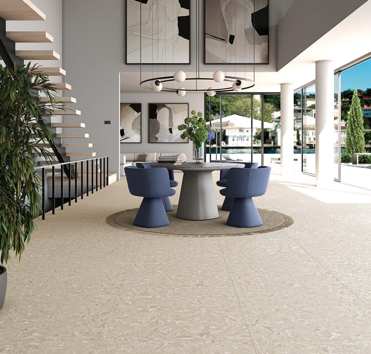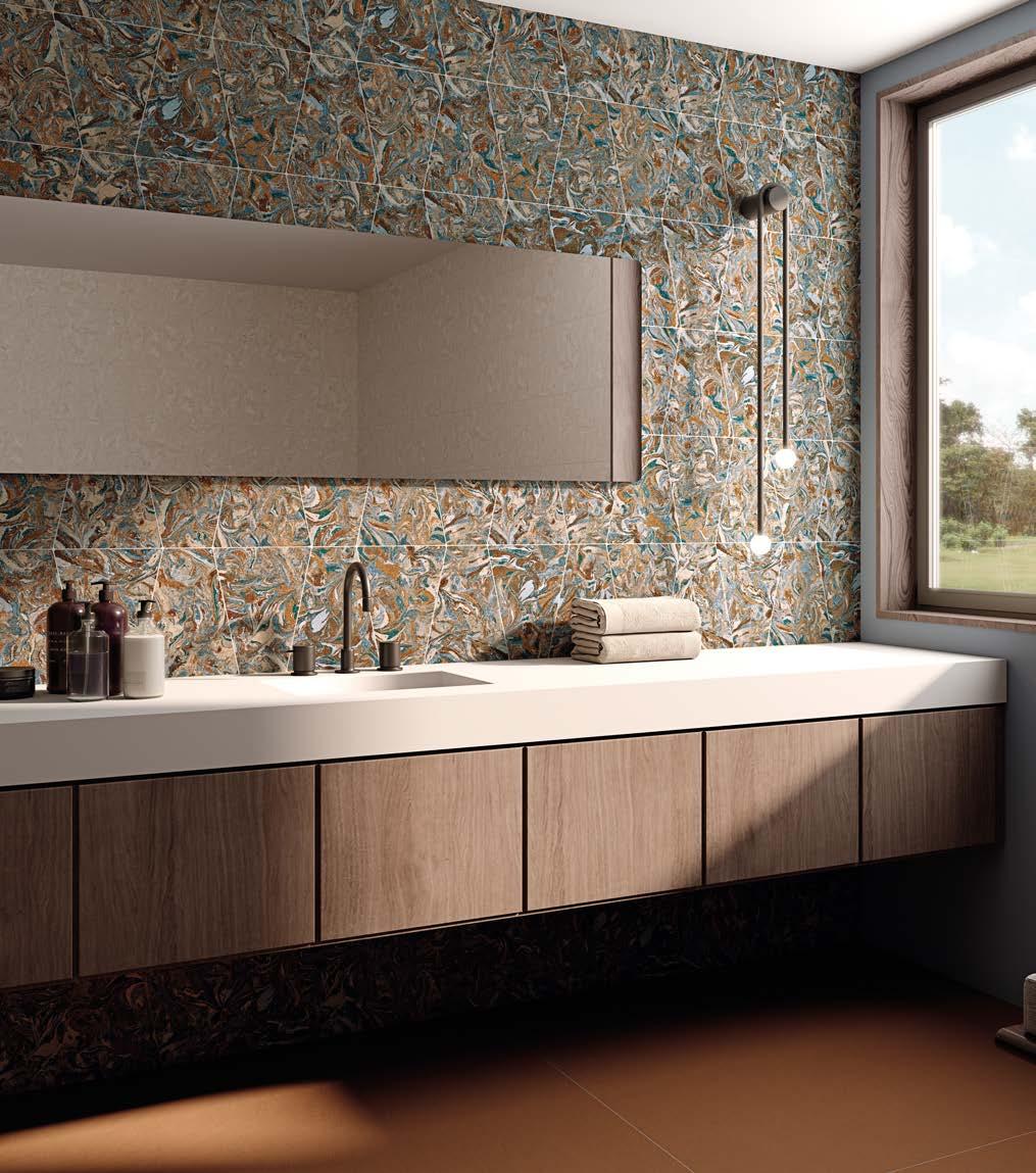 Marbleized porcelain tile collection draws inspiration from the mesmerizing art of marbling, where ink interacts with liquid to create distinctive patterns. This collection exemplifies a unique aesthetic, blending fluid designs with a palette that mirrors the unpredictable beauty of this creative process.