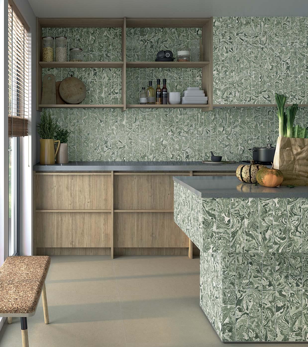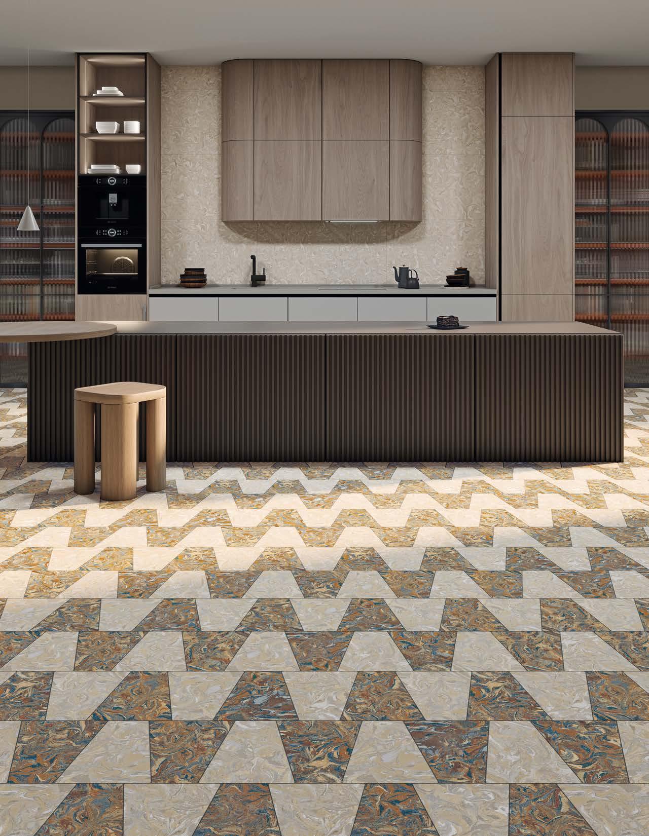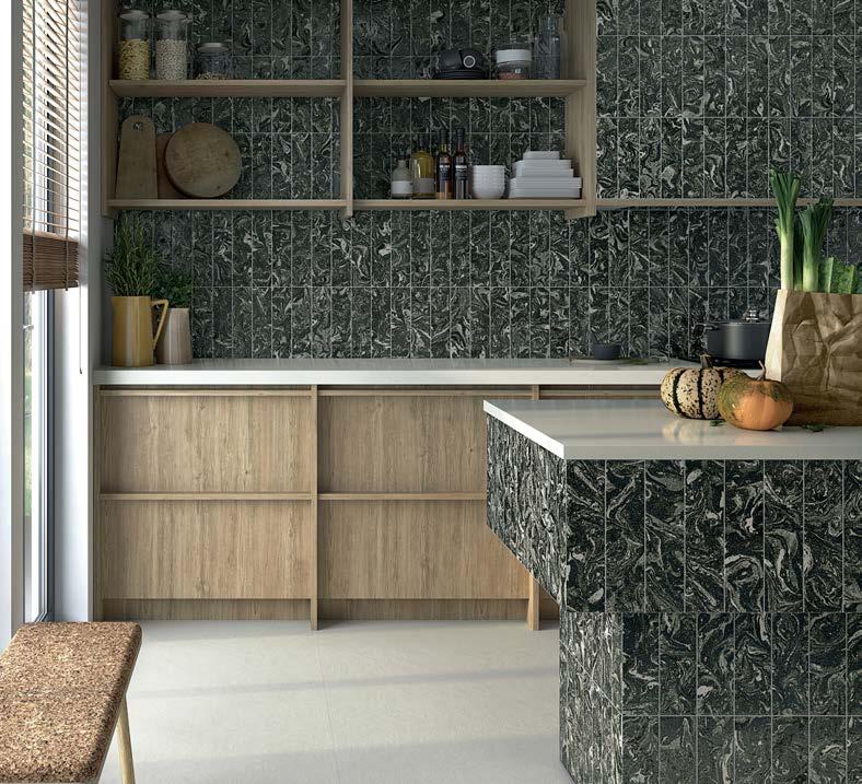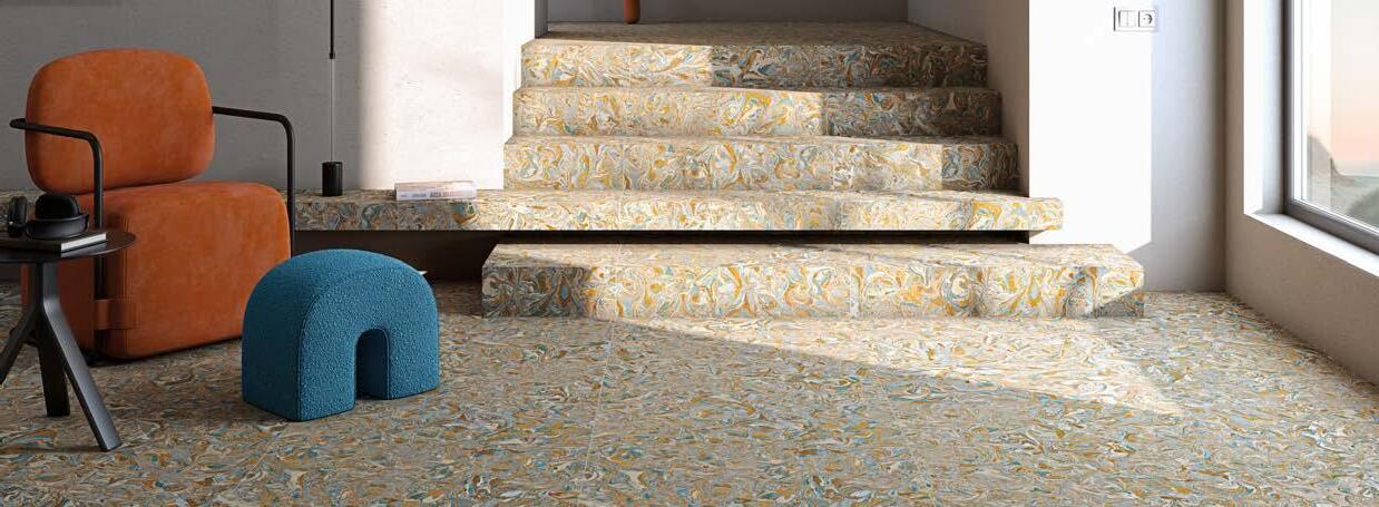 Marbleized porcelain tile collection draws inspiration from the mesmerizing art of marbling, where ink interacts with liquid to create distinctive patterns. This collection exemplifies a unique aesthetic, blending fluid designs with a palette that mirrors the unpredictable beauty of this creative process.