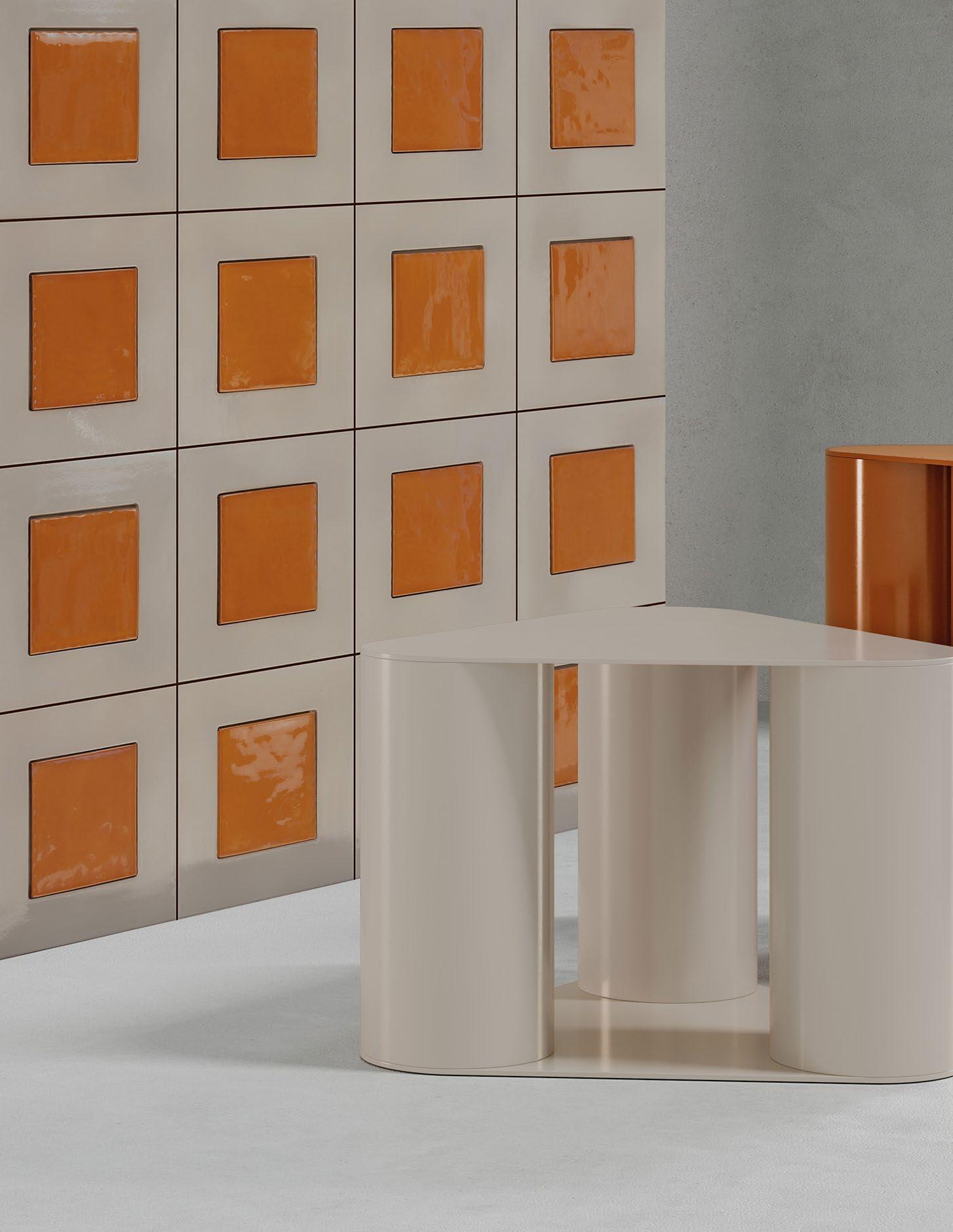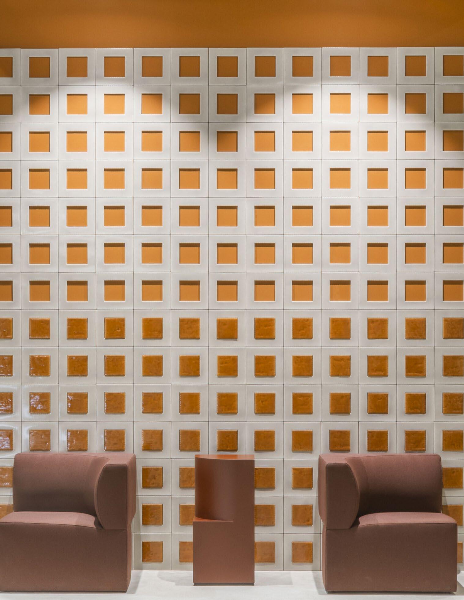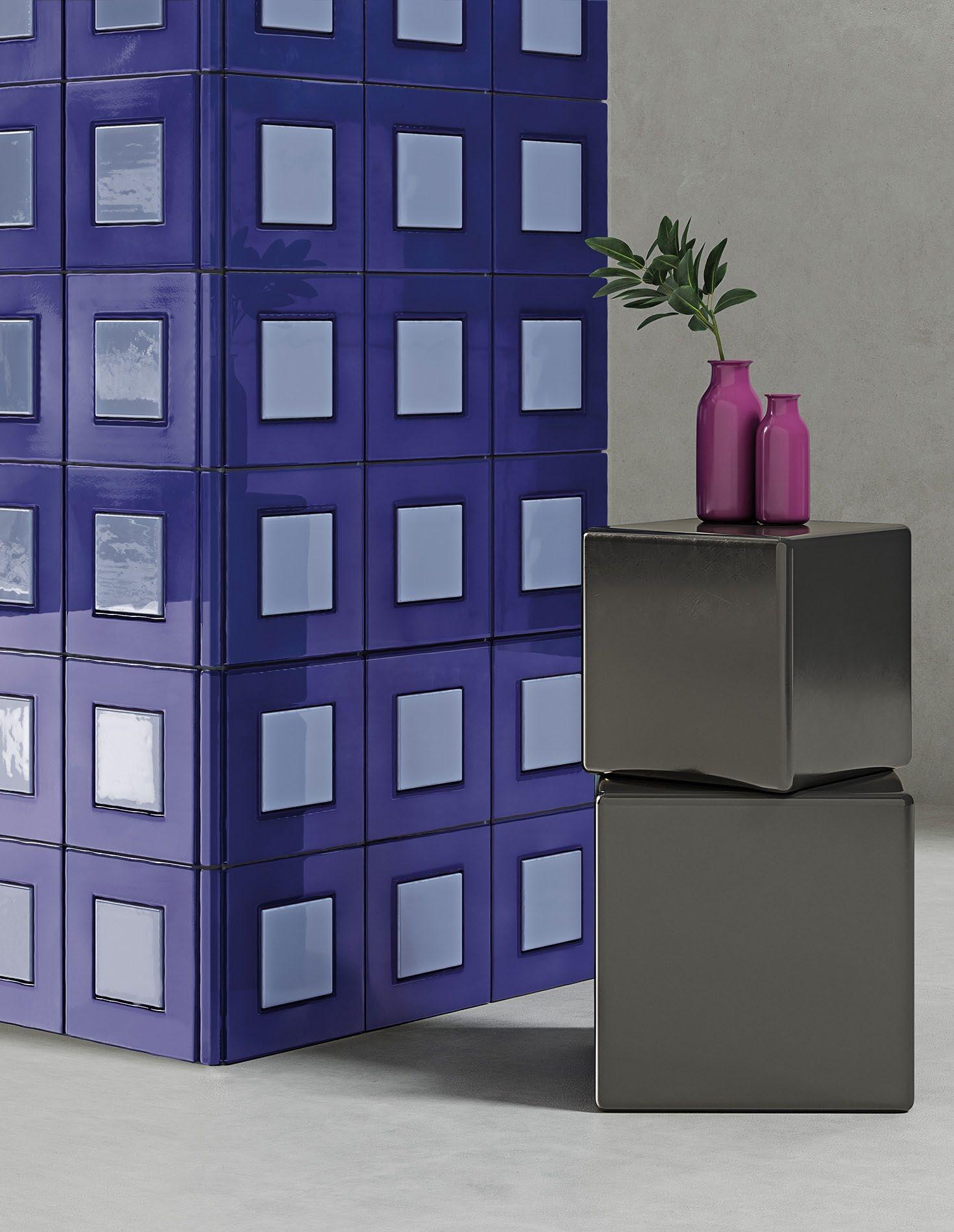 Reverse porcelain tile transforms walls into interactive compositions , utilizing shape, color, and texture in an infinite array of arrangements. Framed forms and open centers offer a balance of structure and fluidity , allowing designers to shift perspectives with each design.