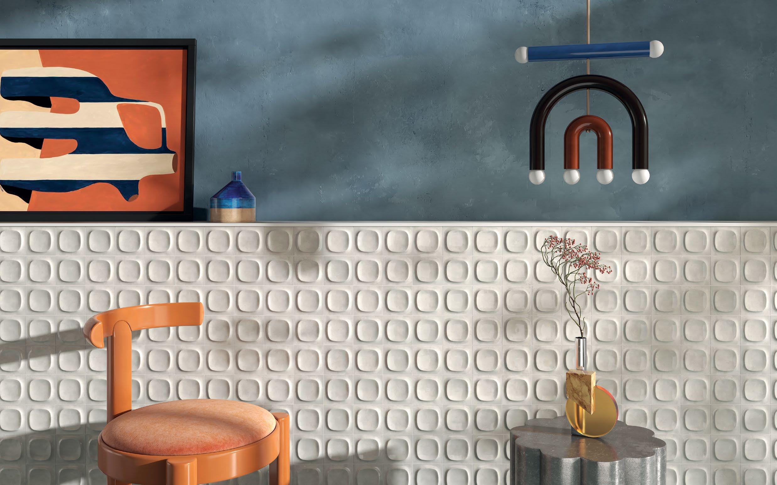 Seventy ceramic tiles blend retro charm with forward-thinking design. Drawing inspiration from the spirited 1970s, this collection celebrates the era’s iconic style and energy. The versatility in format allows for creative experimentation with textures and patterns.
