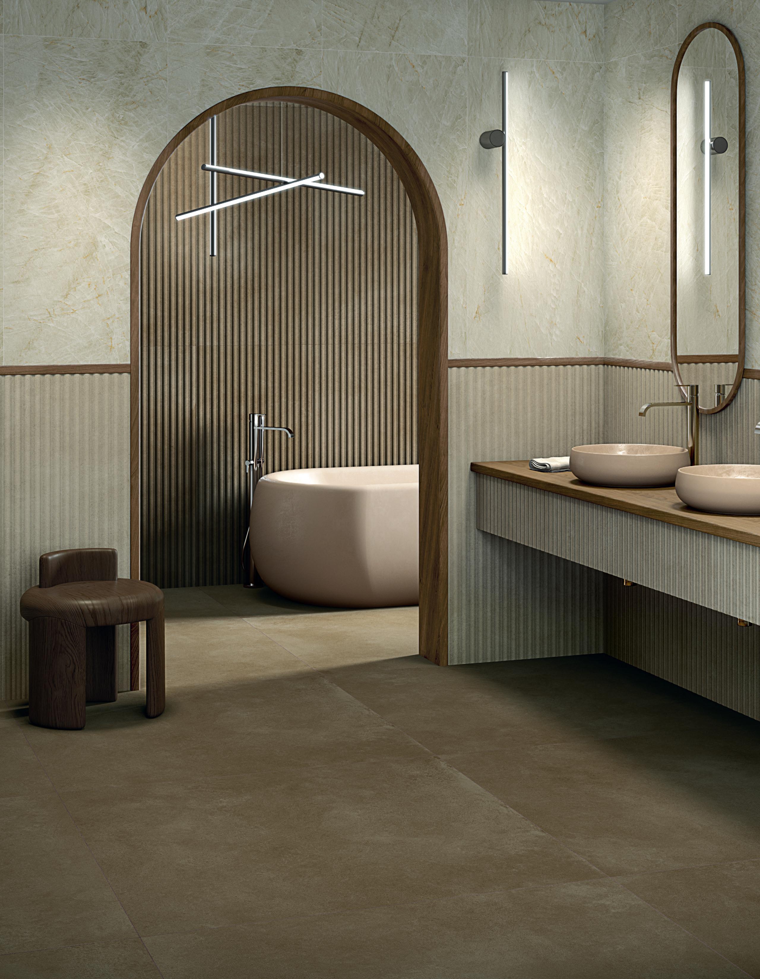 Sync porcelain tile combines the refined allure of marble with the modern edge of cement in a bold yet balanced collection. Designed to challenge traditional boundaries, Sync transforms two contrasting styles into a cohesive visual language that feels both innovative and timeless.