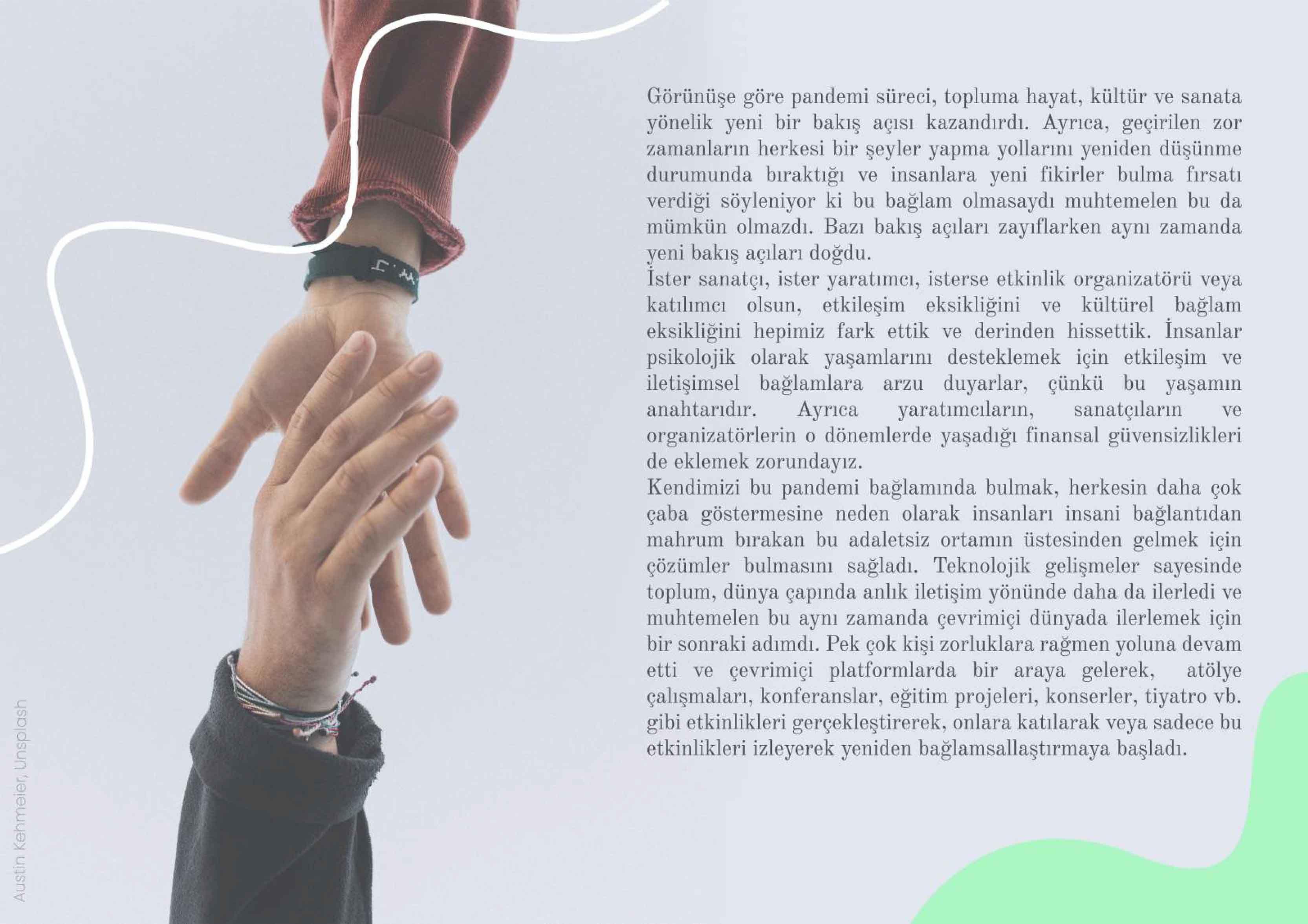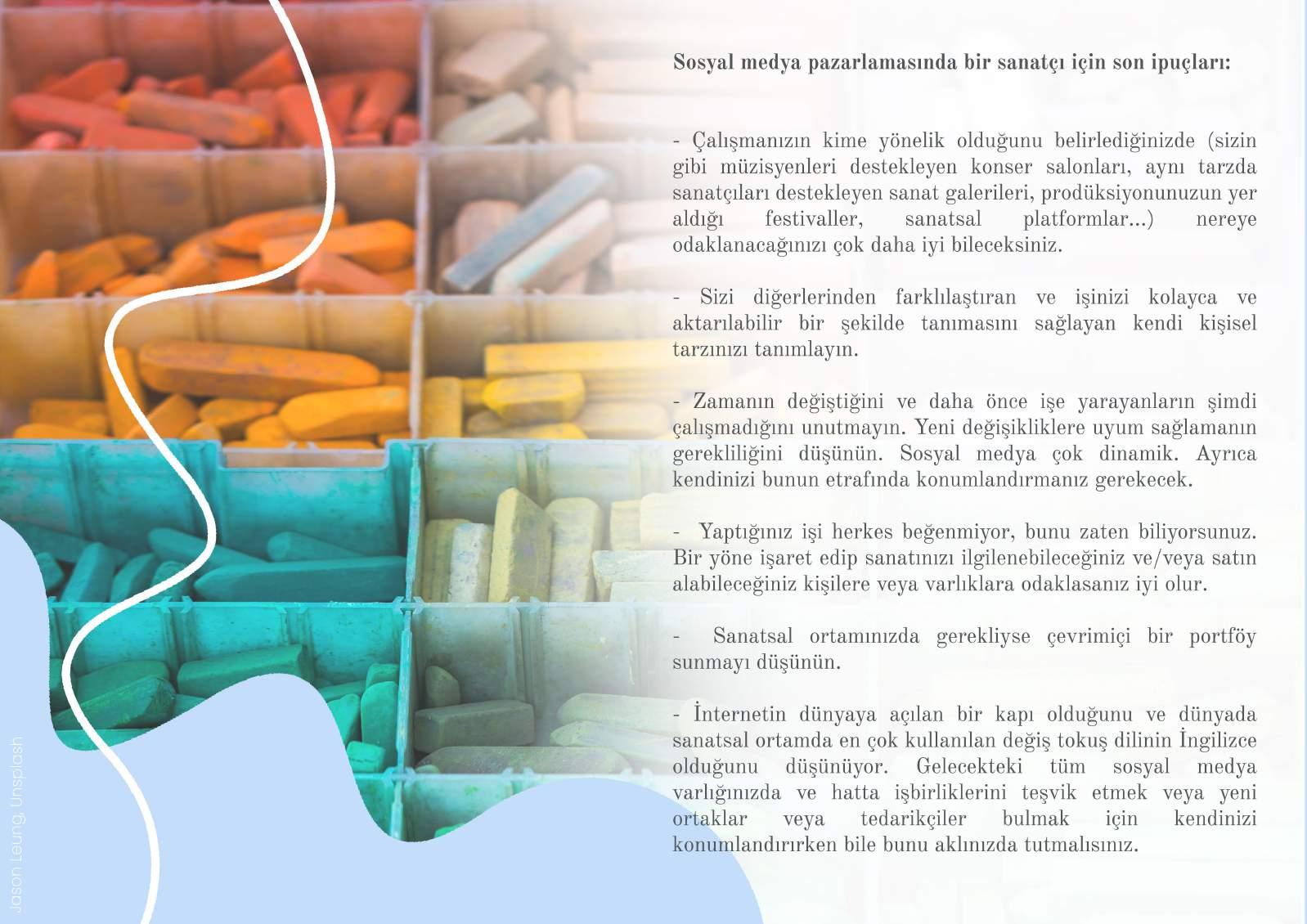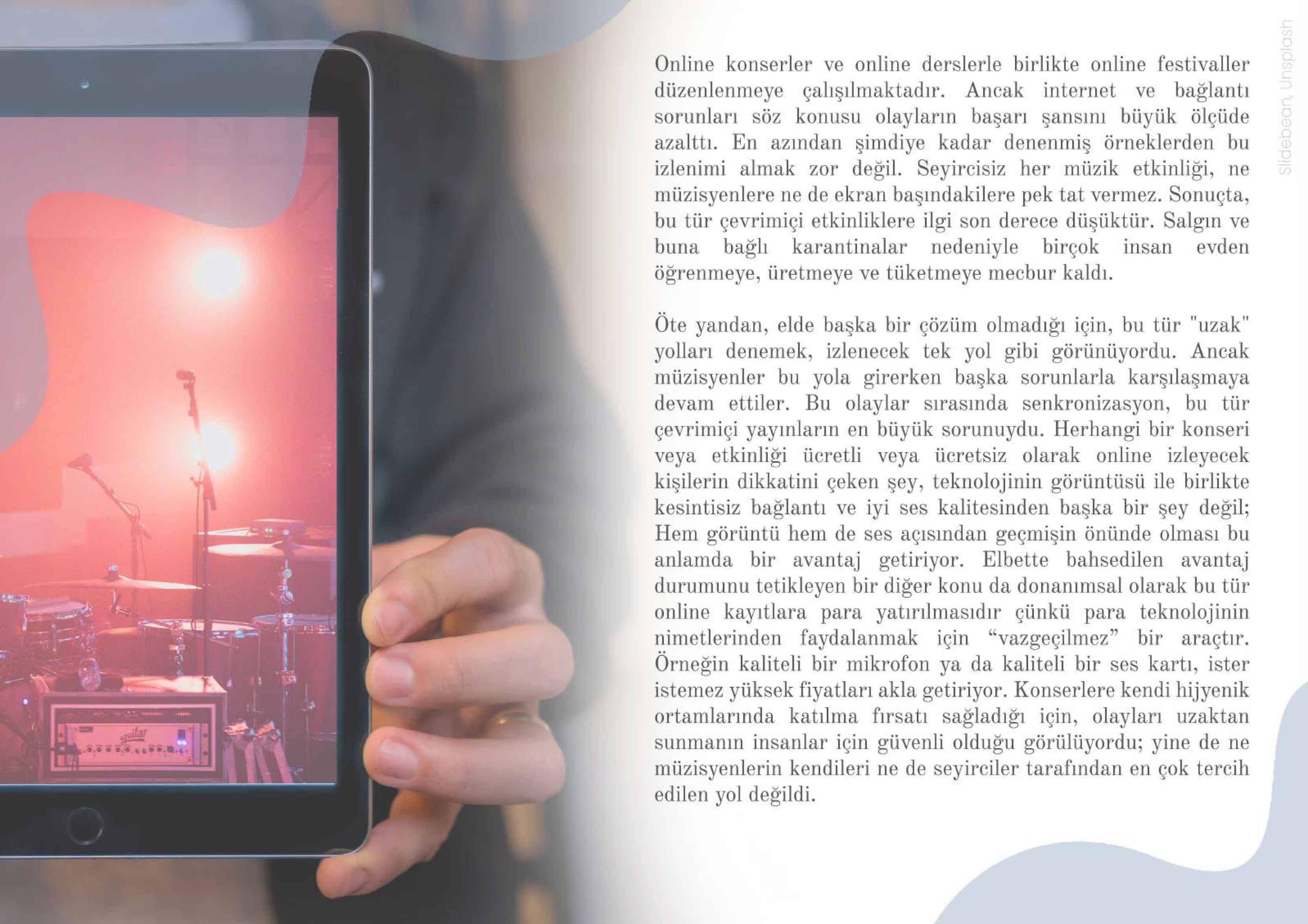 Bu materyal sayesinde, yaratıcı web seminerleri, çevrimiçi etkinlikler ve konserler oluşturmanın süreçleri hakkında ve hükümetlerin sağlık koşulları nedenleriyle uygulayabileceği tüm olası kısıtlamalara ve kurallara uygun olarak küçük canlı etkinliklerin nasıl organize edileceği konusunda adım adım bilgi edinebileceksiniz. Bu zorlu zaman diliminde çeşitli ülkelerde gerçekleşen dijital ve gerçek yaşam olaylarının bazı örneklerine göz atabilecek ve kendinizi nasıl daha iyi tanıtacağınıza dair bazı ipuçlarını öğrenebileceksiniz.