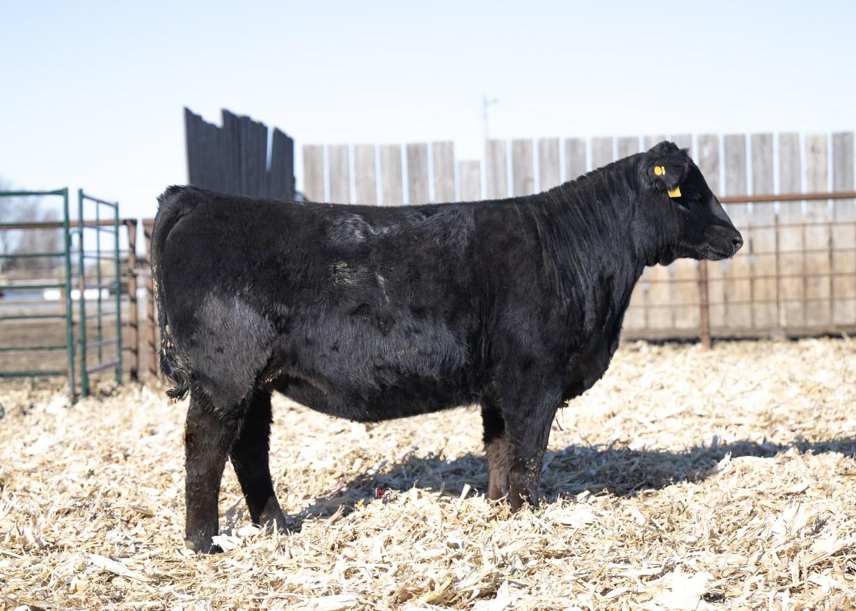 seen before. Lot 89 is another opportunity to make them all black! The A368 cow goes back to a great bull we purchased from M & E Angus and has produced well for us for the past 11 years. She always stamps her calves with eye appeal!
