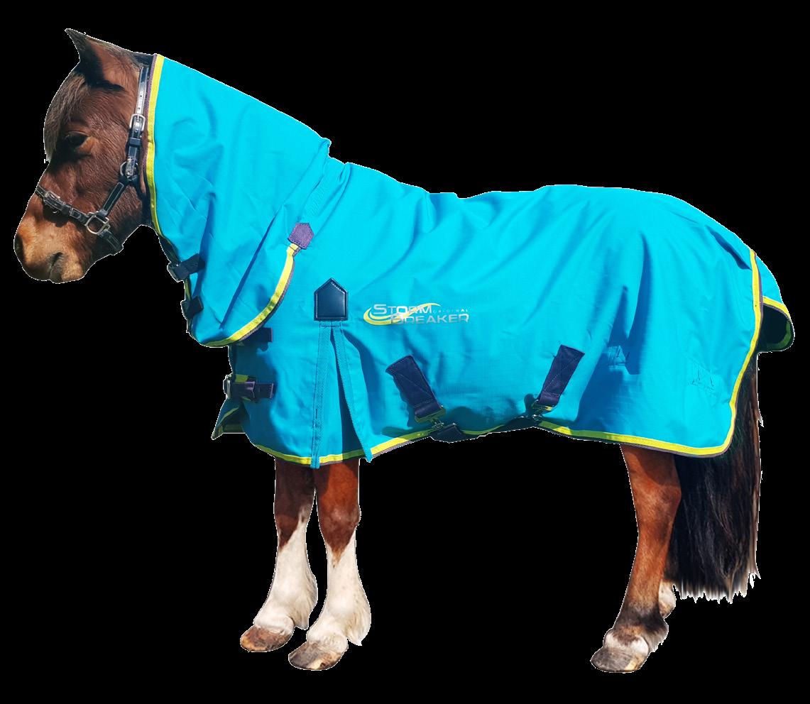 Rug Only (Shown) Sizes 3’3” - 5’6” $139.99 EACH Combo Sizes 3’0” - 5’6” $159.99 EACH Neck Cover Sizes S - XL $59.99 EACH Mini Combo Sizes 24” - 39” $99.99 EACH Washing Instructions Machine washable with non-detergent soap. Composition 100% polyester excluding fittings Fabric Guide Shires turnout rugs are manufactured using ShireTex® advanced breathable fabrics. Tough and durable, these fabrics are coated with a specially formulated hydrophilic coating which is designed to attract excess sweat and moisture. The difference in air temperature between the inside and the outside of the rug then draws this sweat/moisture to the outside of the rug where it dissipates into the atmosphere. ShireTex® fabrics are tested under controlled conditions to ensure their suitability for horse rugs and blankets. BY APPOINTMENT TO HER MAJESTY THE QUEEN The Summer Stormbreaker is ideal for warm rainy days and travelling. It has 600 denier waterproof and breathable ShireTex outer, cotton lining that helps to create a shine on the horse’s coat, taped seams, shoulder gussets, low cross surcingles, tail flap and removable leg straps. cotton lining 84