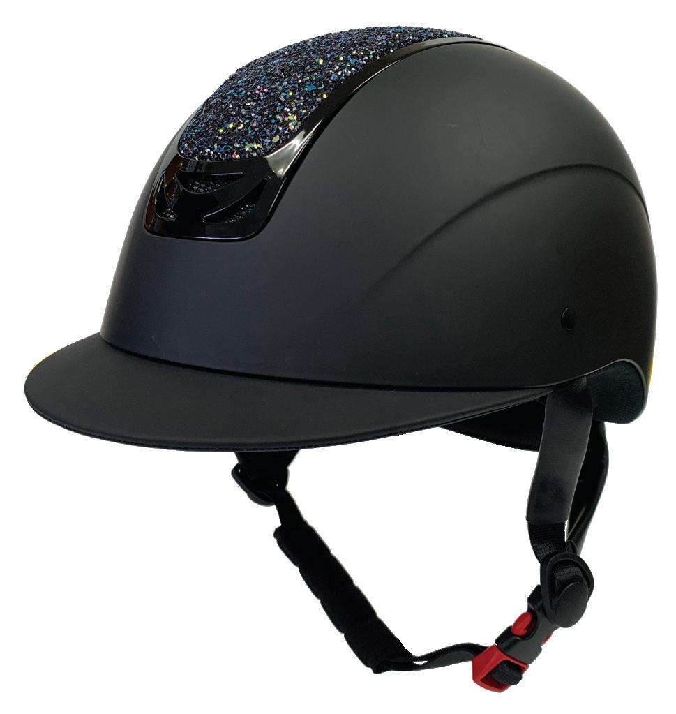 The Lexi shirt has diamantes on both sleeves, a glitter panel down the front with buttons that go up to the collar and it is made of stretchy fabric to give you ultimate comfort while riding.