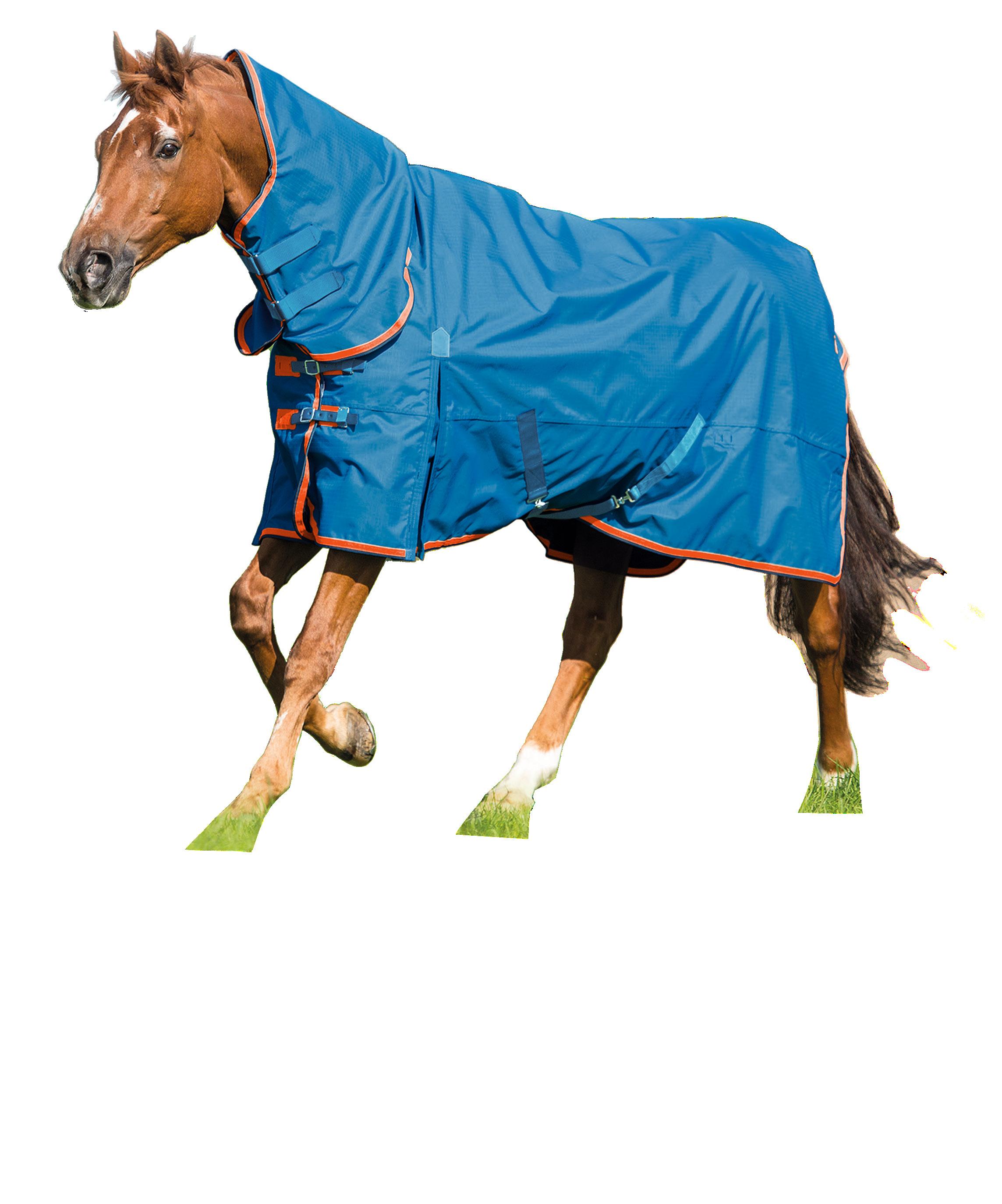 Fully detachable neck attaches on with Velcro, meaning you have the option for a combo or rug only option in one rug! Complete with satin lining in the shoulders and neck, fleece wither, buckle closures on neck, double front straps, shoulder gussets, removable leg straps and tail flap. 70% Polyester, 30% cotton. Sizes 3’0” - 5’9”