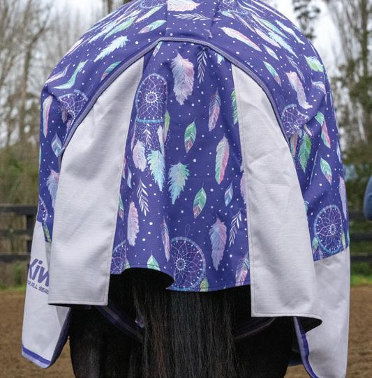 warm rainy days and travelling. It has 600 denier waterproof and breathable ShireTex outer, cotton lining that helps to create a shine on the horses coat, taped seams, shoulder gussetts, low cross surcingles, a large tail flap and removable leg straps. Sizes 24” - 39” $99.99 EACH $44.99 EACH KiwiBlack Crossover Detach Combo Mini Quality lightweight summer sheet with diamond weave ripstop along the top section which is durable and protects from sun and flies. The mesh panels at the side allow more airflow to keep your horse cooler. Fully detachable neck attaches on with Velcro, meaning you have the option for a combo or rug only option in one rug! Complete with sating lining in the shoulders and neck, fleece wither, buckle closures on neck, double front straps, shoulder gussets, removable leg straps and tail flap. 70% Polyester, 30% cotton. Sizes 3’0” to 5’9”. Sizes 24” to 39” NEW! $29.99 EACH Kiwi Kooler Rug Only Mini Made from 100% polyester these rugs are both lightweight and strong. Not only designed to protect from the sun & flies, the tight weave also helps keep off showers. If these rugs do get wet they dry out fast. Complete with removable leg straps and tail guard. Sizes 24” to 36” 83