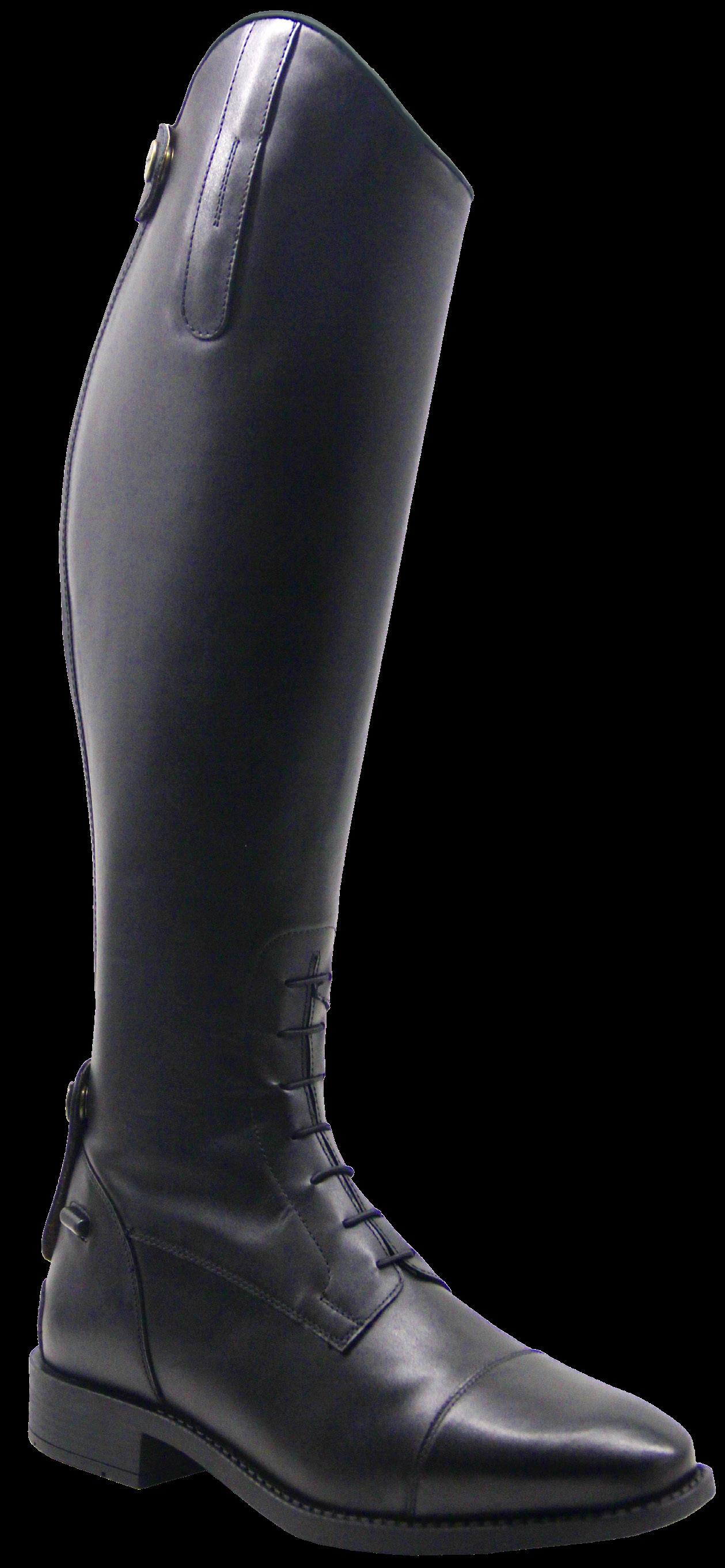 Full range of calf options, short regular, short wide, medium regular or medium wide. These premium, traditional leather boots offer the utmost comfort, elegance and style. Made from high quality cow leather with a full leather lining. Foot bed is removable and features a gel insert for maximum comfort. The fixed elastic lace panel allows for more flexibility through the ankle whilst the full length zip and elastic panel help for a better fit. Black. Sizes 36 - 43