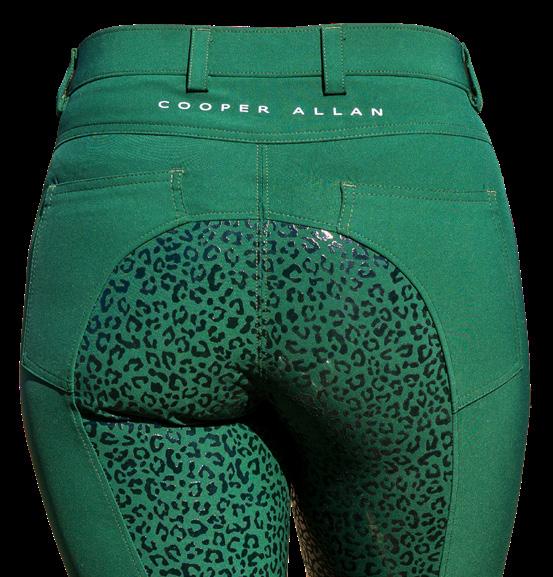 Woven breech with full seat gel grip in animal print. 4 pockets and Cooper Allan logo on the back, lycra sock and belt loops. Moss or Brown.
