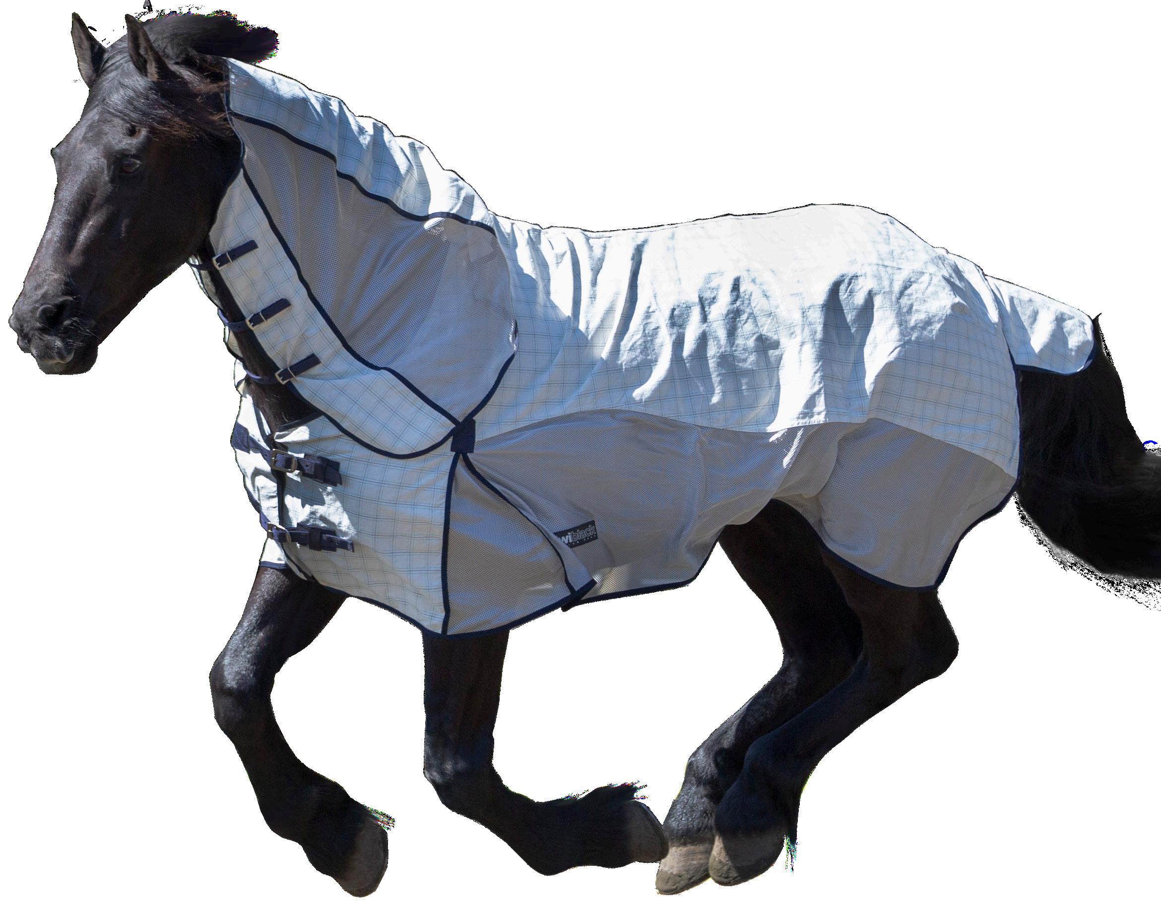 RIPSTOP KiwiBlack SunStopper Combo Durable ripstop shade rug which protects against flies and UV. Features a Lycra insert at the base of the neck to reduce pull and an oversized tail guard. Rainbow. Sizes 3’9” - 5’6” $99.99 EACH 89