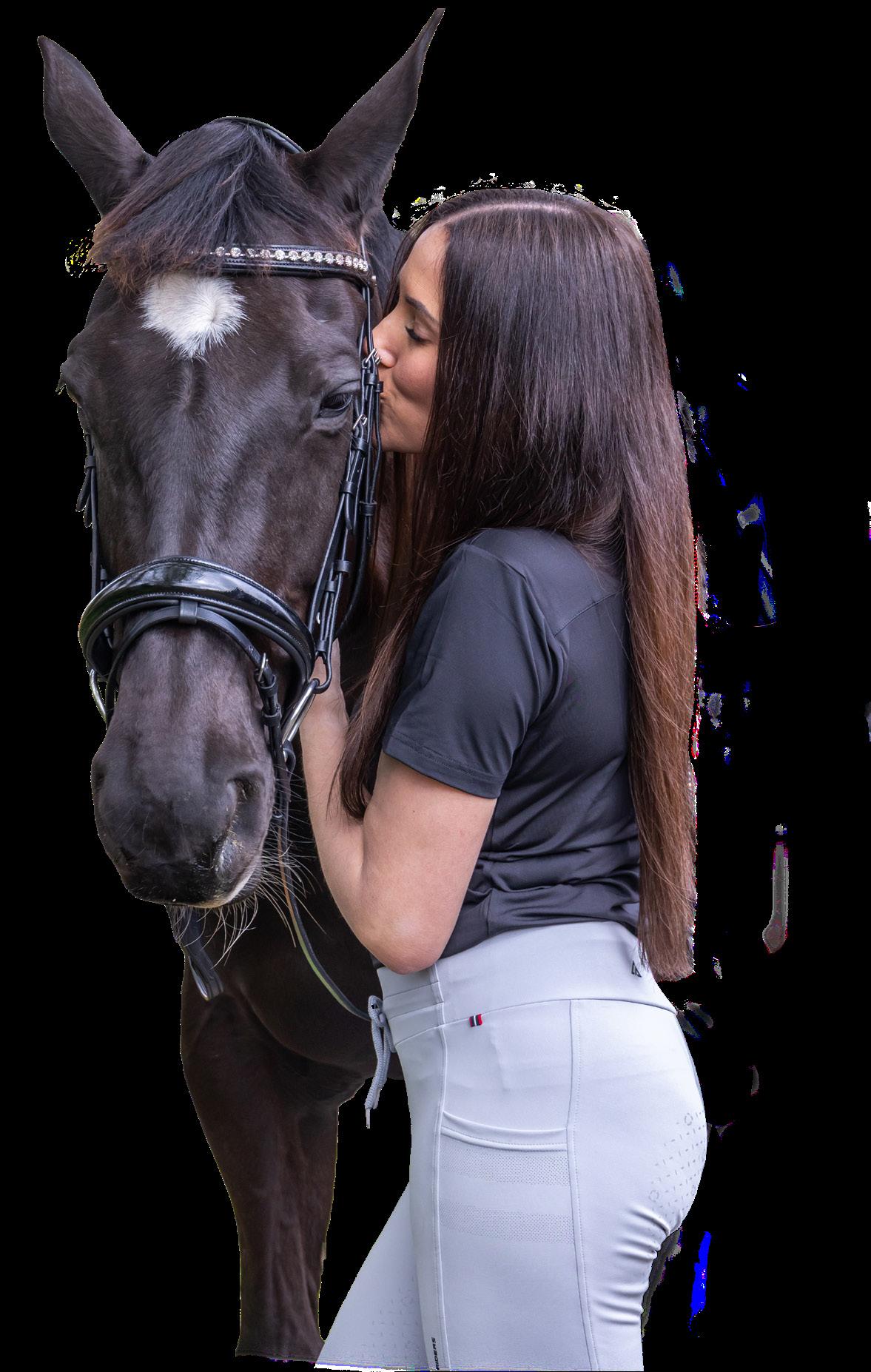 Comfortable pull on glove with pimple grip on the palm and mobile friendly index finger & thumb. Silicone horse jumping print on palm and wrist. Black