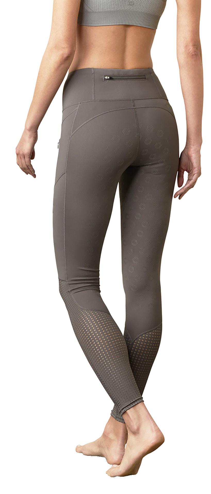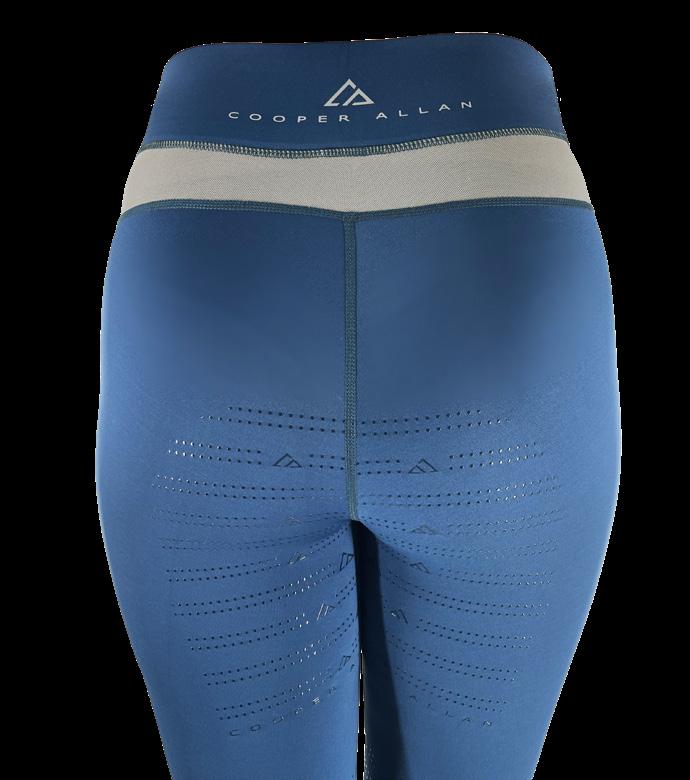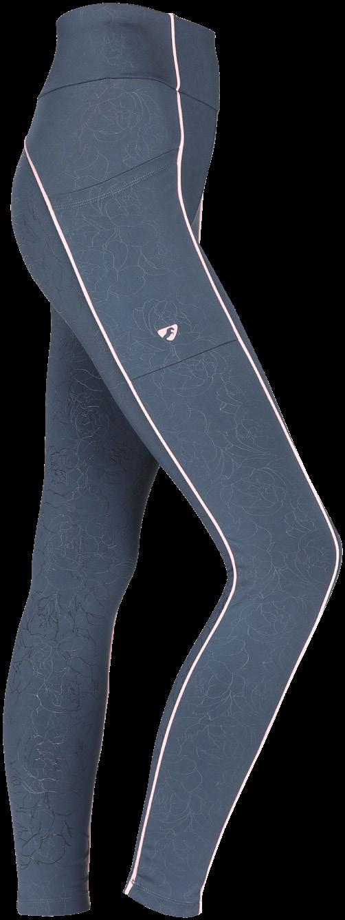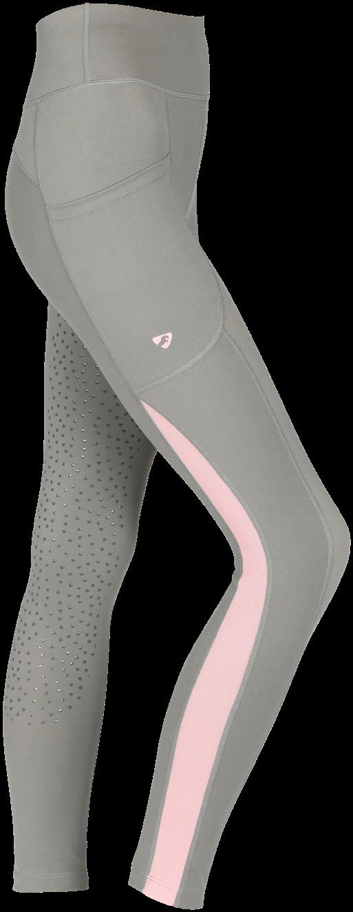 The Isabella tight is made of a stretchy soft fabric with grey detailing on pockets and a grey mesh panel running along the back. Cooper Allan branding on the high waistband and full seat gel grip. 75% Nylon 25% Spandex. Sizes 8 - 18