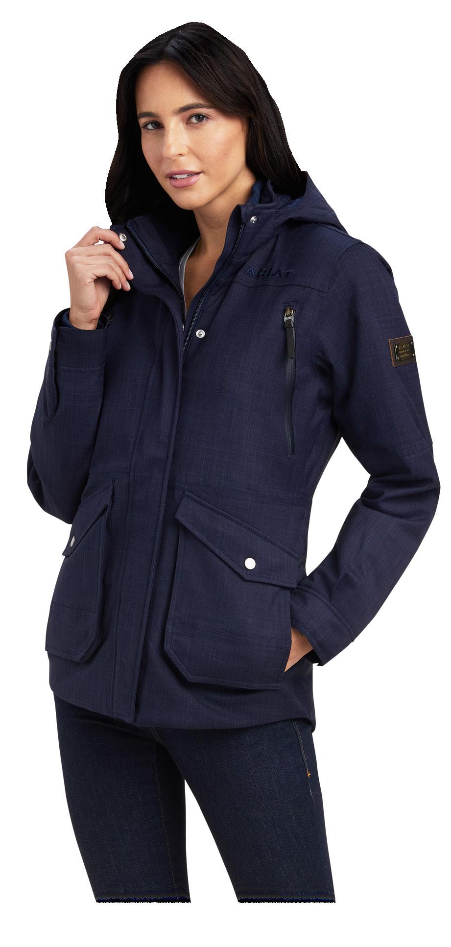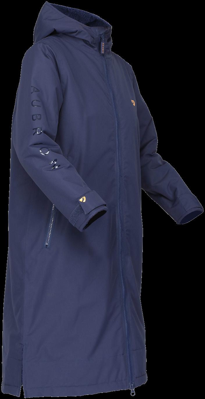Braving the weather goes with an equestrians lifestyle, the right clothes making all the difference. Insulating sherpa fleece lines the body, arms, hood and the inside of the pockets to protect against the cold. A hidden rear zip and two way front zip allow the lower hem to be split for riding. Waterproof and breathable, taped seams, thermal lining. Navy. Sizes S - L