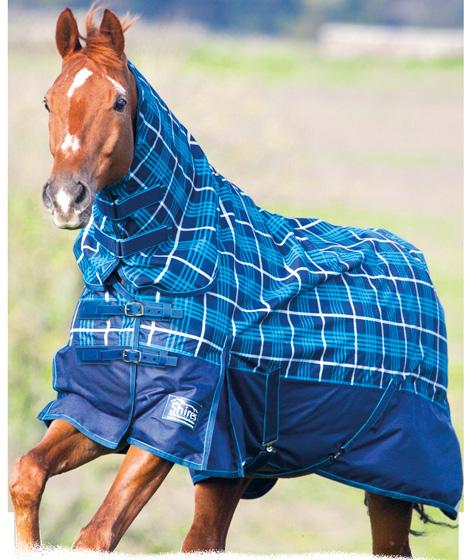 High performing comfort! The combo benefits from a ShireTex 1200 denier waterproof, breathable outer shell with taped seams, 200g quilted inner fill, full lining which helps encourage a shine to the coat, deep shoulder gussets, adjustable cross surcingles, leg straps and a pleated tail flap. Sizes 24” - 39”