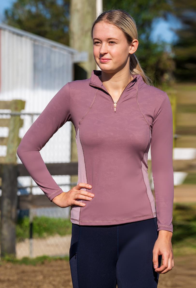 This long sleeve baselayer has mesh panelling on the sides for breathability, ¼ zip on the front, glitter Cooper Allan branding on the back. Rose or Grey. Sizes XS - XXL