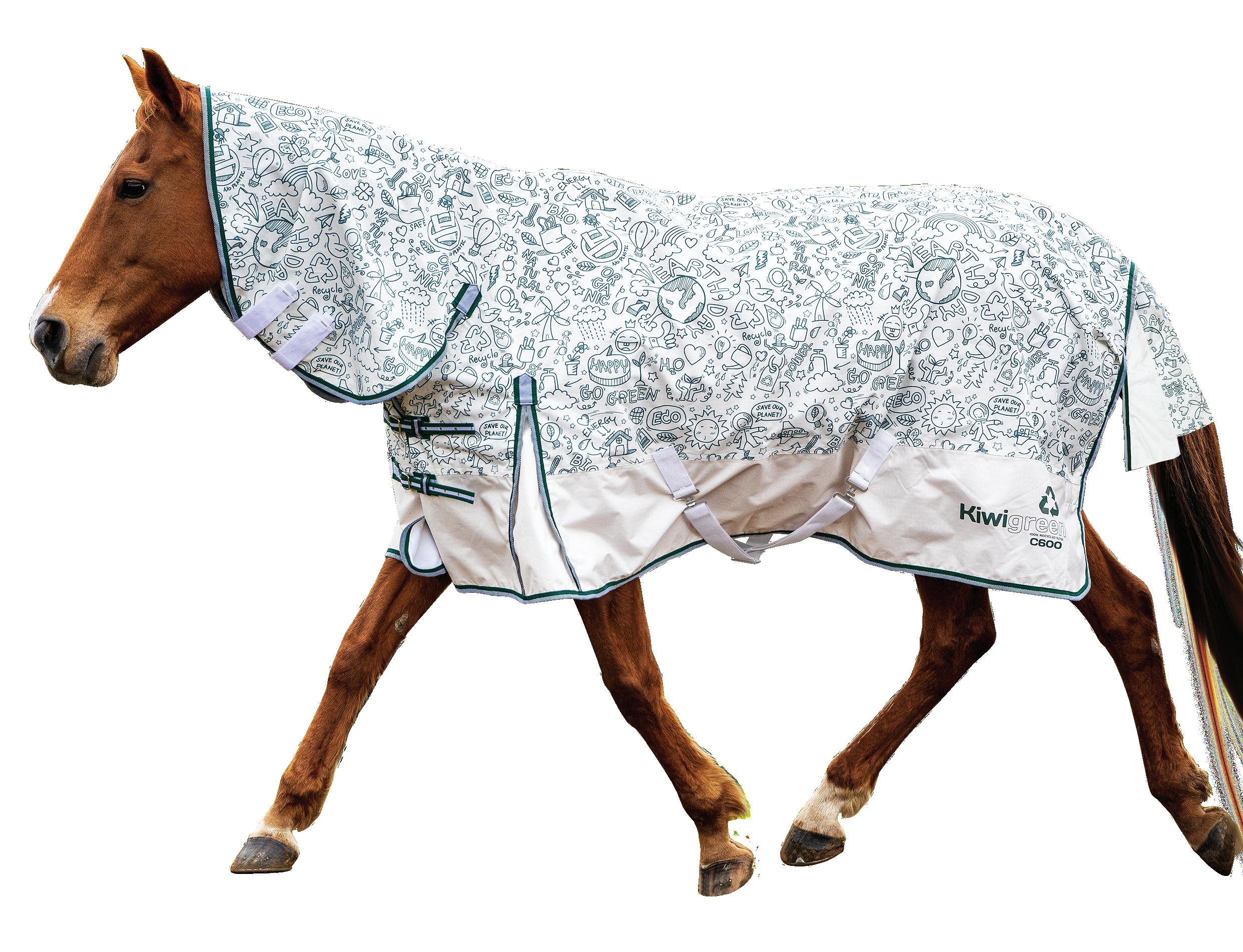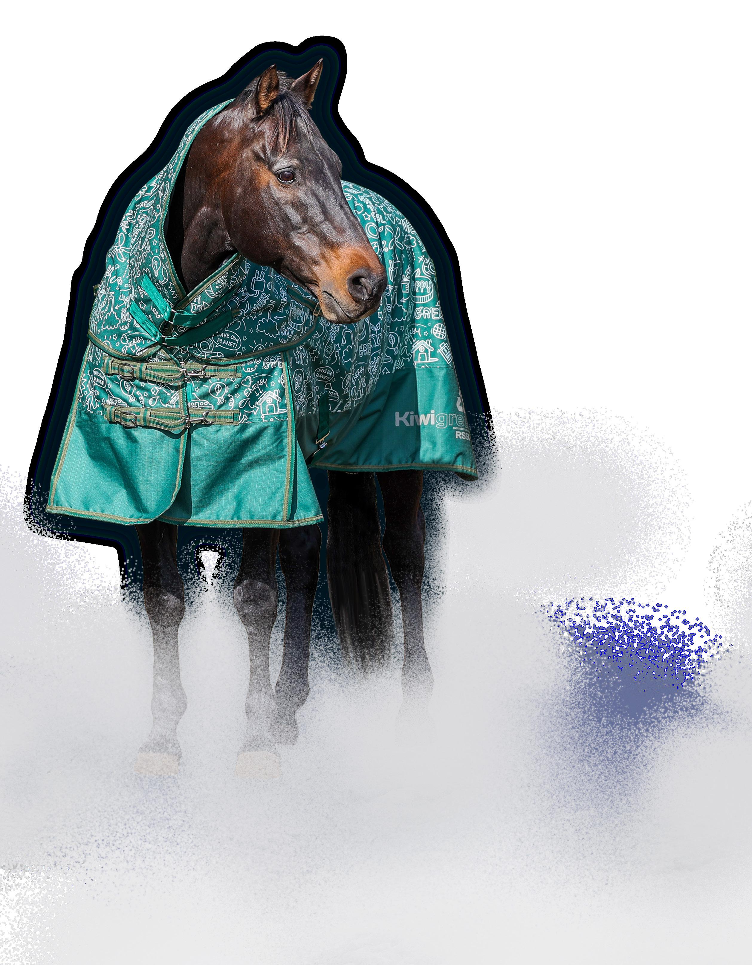 72 Kiwi 1200 Btween 1200 denier ripstop, waterproof and breathable with a thermal lining. The thermal lining wicks away moisture, whether it’s sweat or condensation keeping your horse drier. Cross surcingles, shoulder gussets and removable leg straps come as standard. Sizes 4’6 to 5’3 The rug only has added features such as front quick clips, large pleated tail flap and reflective details. $39.99 EACH Neck Rug S - XL $139.99 EACH Combo 3.9'' - 5.6'' $99.99 EACH Rug Only 3.9'' - 5.6'' KiwiGreen 600 Summer The KiwiGreen Summer combo is made of 600 denier showerproof and breathable material. The outer fabric is 100% recycled material made up of around 180 bottles. Double front straps, shoulder gussets, cross surcingles, tail flap and removeable leg straps. Sizes 3’9” - 5’6” $119.99 EACH Combo (Shown) $109.99 EACH Rug Only $89.99 EACH Mini Combo 24” - 39” 1200 DENIER STRONG