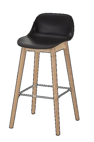 Fiber Bar Stool with Backrest 75 cm - Wood Base