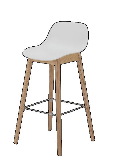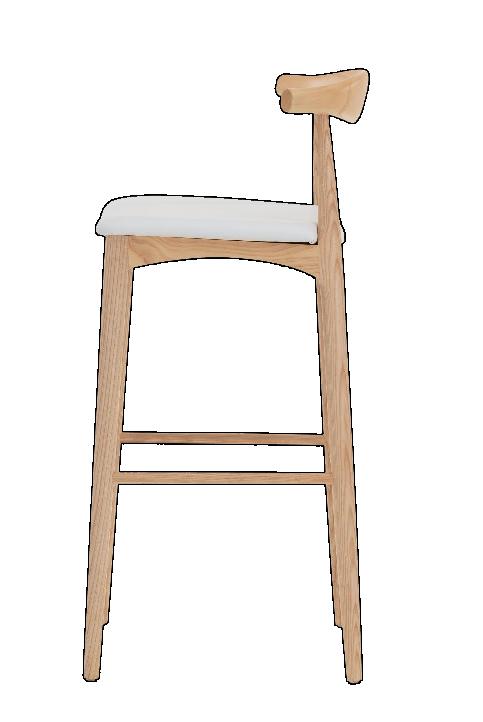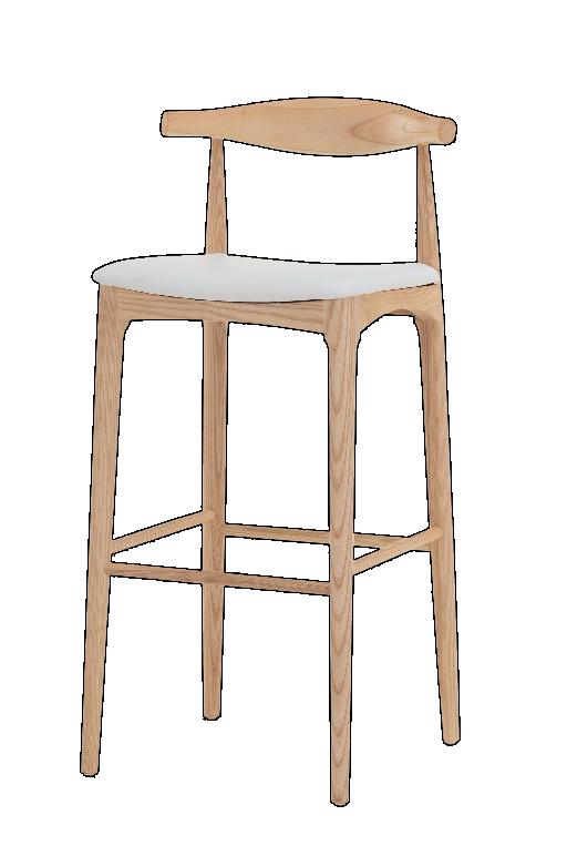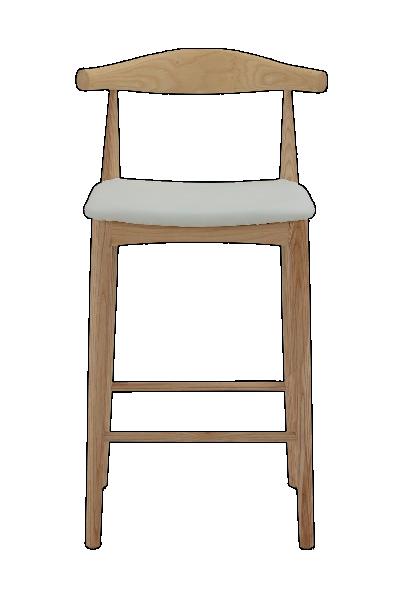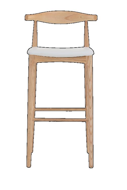 Elbow Bar Stool 75 cm Seat HeightNatural Frame with White Seat