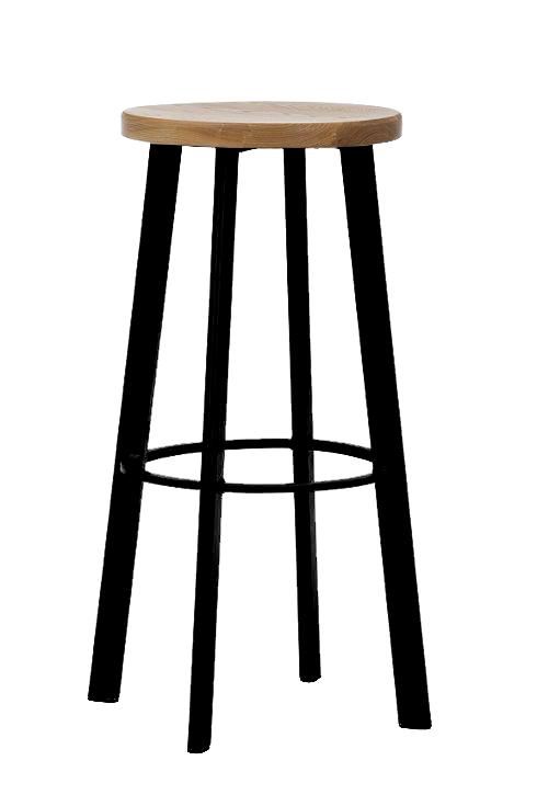 Robusta Metal Stool 65 cm - Black with Natural Timber Seat