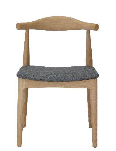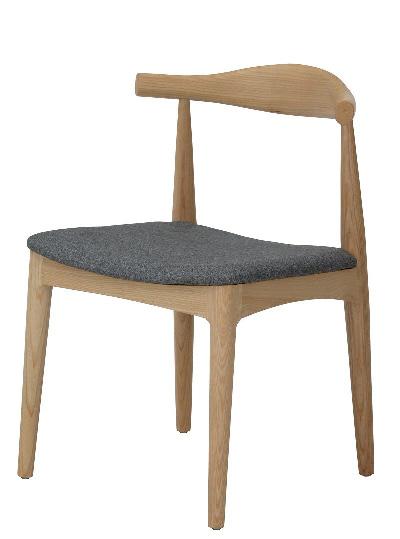 Hans Wegner Elbow Chair - Natural Frame with Grey Fabric Seat