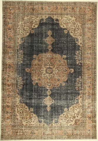 Sustainable splendor, these patchwork and over dye vintage rugs are a modern take on tradition. Vintage oriental rugs are cleaned, sheared, and dyed to create a new masterpiece. Full sized rugs in excellent condition are kept as whole, while rugs that have problem areas are patched together to minimize waste.