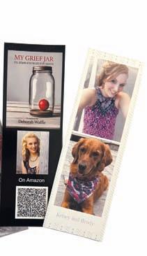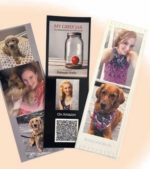 These bookmarks are printed and handed out to the people Brody visits in his therapy dog role to honor Kelsey’s memory.