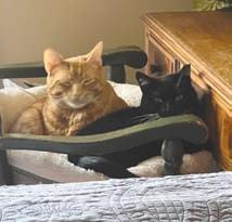 Mama Sunshine adores her babies, Stella and Persi, and together they make the sweetest cuddle puddle you’ve ever seen. We would love for her to join her kittens in their forever home - because their bond is pure magic. Watching them snuggle and support each other is heartwarming beyond words.Treats are the key to her heart, and she’s starting to play—wand toys are her new favorite! She carefully observes Stella and Persi interacting with humans and is bravely starting to follow their lead. With patience and kindness, Mama Sunshine will reward you with trust, love, and a quiet joy that feels like sunshine on a cloudy day.