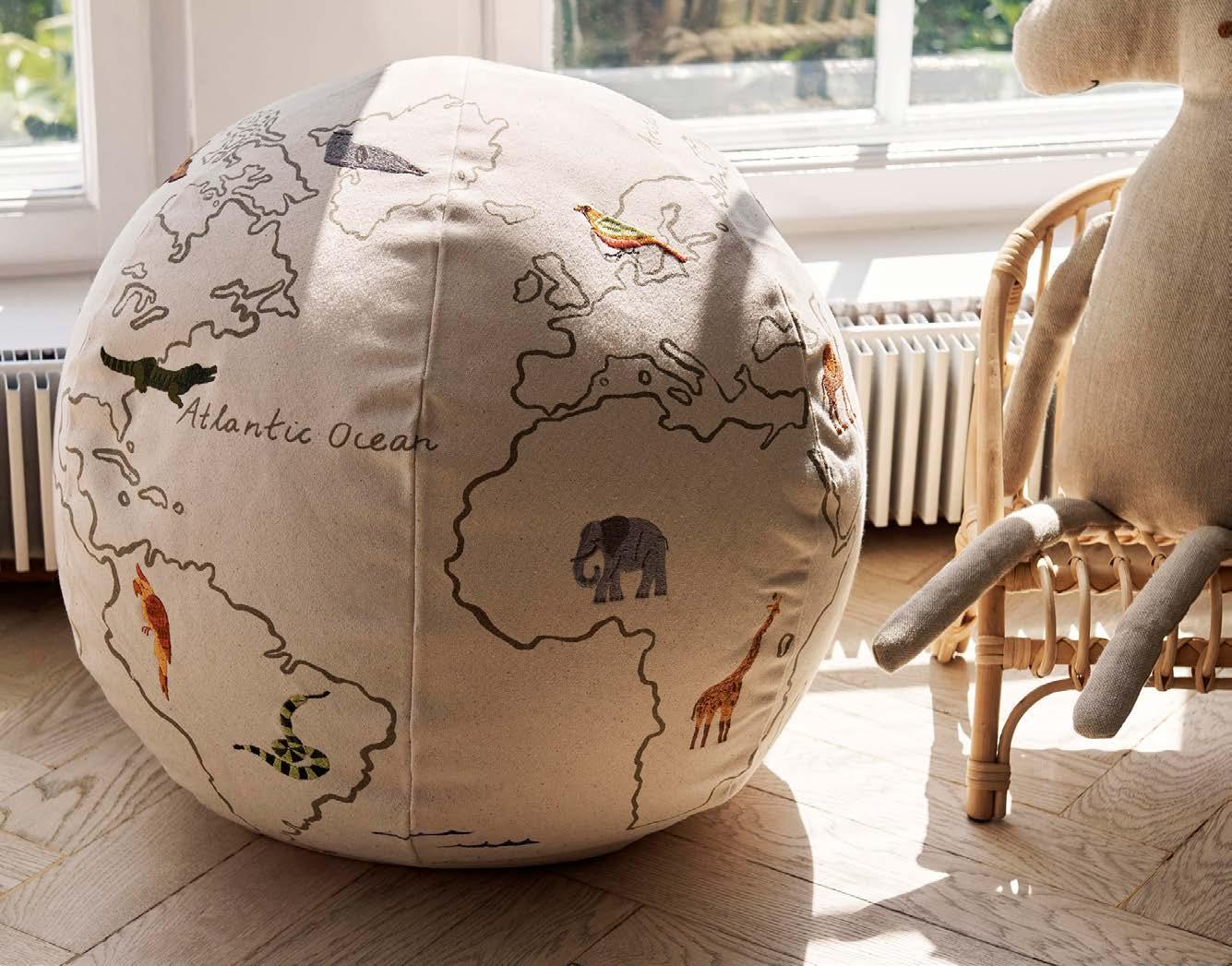 Bliv inspireret til at udforske verden med The World Pouf fra Ferm Living, der også er en blød siddeplads. Puffen er broderet med storslåede dyr, der kan findes rundt omkring i verden. Vejledende pris kr. 1348,-