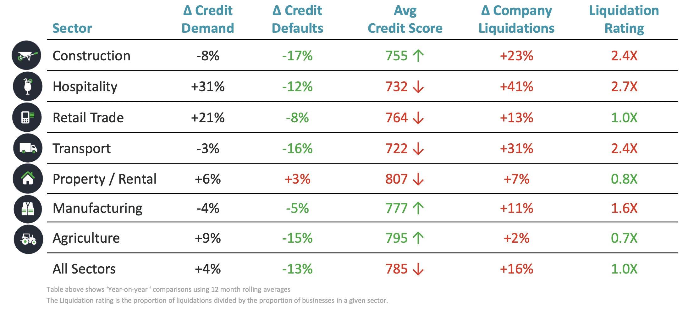 After recording an 8% year-onyear increase in business credit defaults in July, green shoots started to emerge with credit defaults down 13% year-on-year and business credit demand up 4% year-on-year by October.