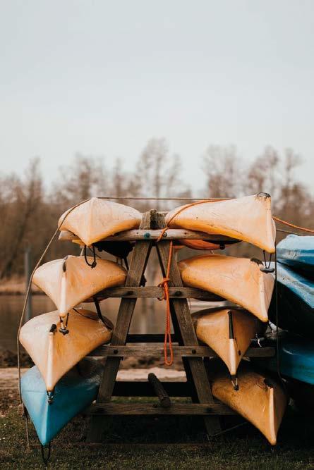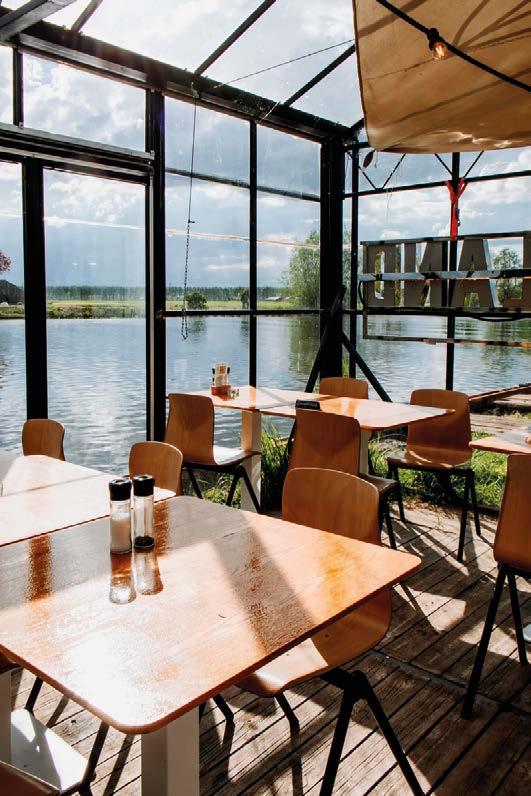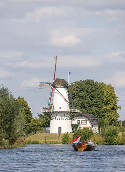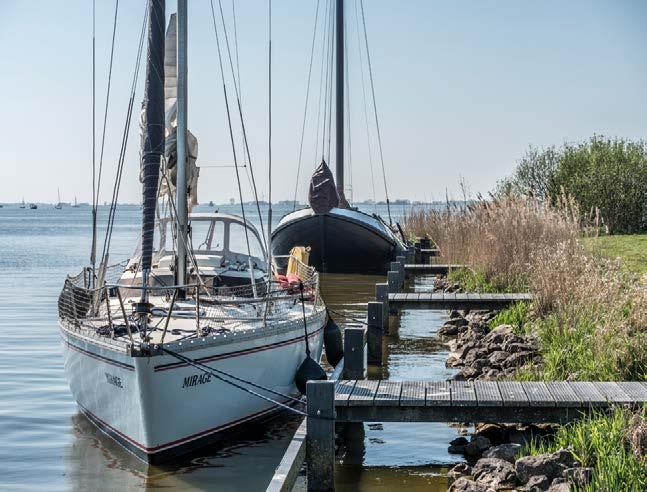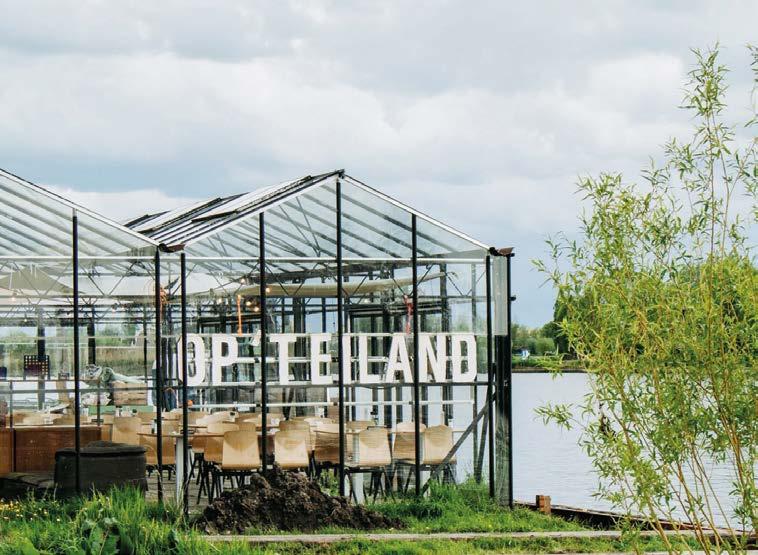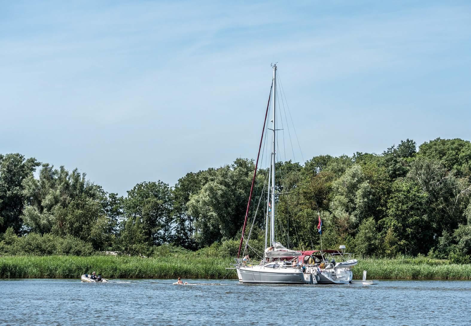 loopt er alleen nog wat kleinvee en zijn er twee safaritenten neergezet voor wie meer van ‘glamperen’ houdt. Samen met mijn medekampeerders, Waldo Broeksma en Hannie Korthof, kijk ik naar de zeilbootjes die voorbijvaren. De twee gepensioneerde biologen zijn hier vanuit hun huis in Leiden-Noord naartoe gekajakt en bekijken nu met verrekijker de zeilwedstrijd – en soms een passerende vogel. De wind is intussen gedraaid en de Kaagbaan op Schiphol is geopend, wat duidelijk te merken is aan de laag overvliegende vliegtuigen. Als luidruchtige herinnering dat we ons hier toch écht midden in de Randstad bevinden, op een steenworp afstand van zowel Amsterdam, Rotterdam, Den Haag en Leiden. Maar verder… ➤