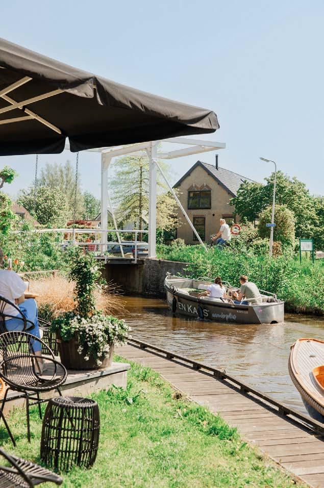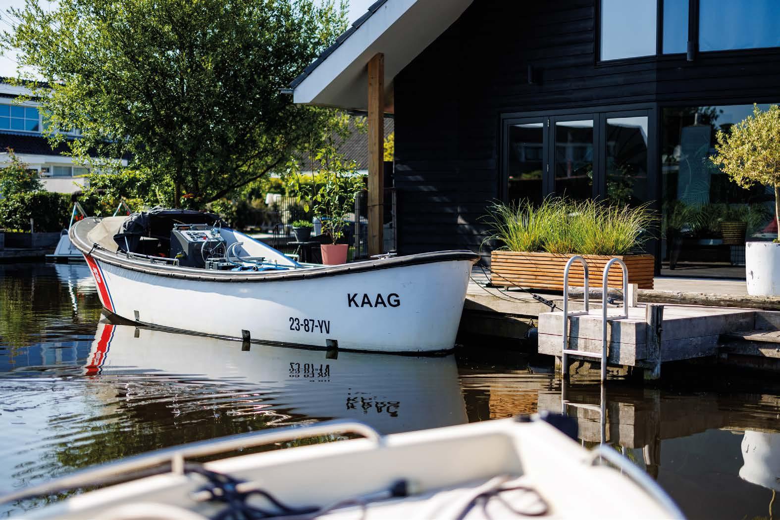 Orion dat alleen open is bij, u raadt het al, mooi weer. Ondertussen rijdt haar man voorbij op een scootmobiel, een bierkrat achterop met daarin zijn krukken; hij heeft een blessure opgelopen en kan zo toch door de Kager straatjes blijven crossen. “Het voelt hier een beetje als een vrijstaat”, glundert Nanda, die overigens ook lid is van Stichting Kaag en Braassem Promotie, een organisatie die zich inzet om de gemeente Kaag en Braassem en haar regio op de kaart te zetten voor bewoners, toeristen en recreanten. Daar hoeft ze niet veel extra moeite voor te doen, Nanda is met haar enthousiaste verhalen en anekdotes de perfecte ambassadeur voor het dorp. “Onze kinderen varen weleens vanaf hier met de boot naar de McDonald’s in Sassenheim!”