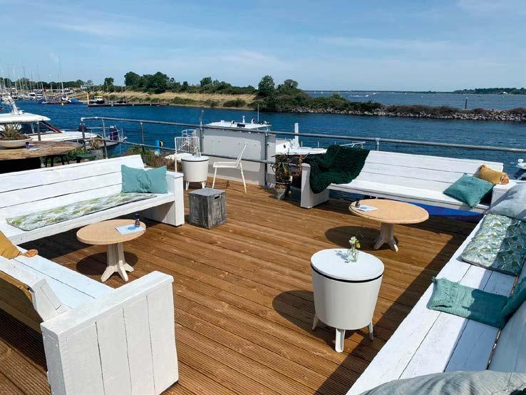 ‘The Sunny Coffee Club’ staat er op een bordje bij het openbare strandje tegenover Stal op de Kaag, waar ook het fietspontje aankomt in de zomermaanden. Eronder een pijl richting Hotel Orion, in 1905 gebouwd als school, later jeugdherberg en tegenwoordig dus hotel. Hier tref ik Nanda Schrover, van oorsprong Brabantse; ze woonde 25 jaar in Amsterdam en verhuisde voor de liefde naar De Kaag. “Dat was wel even wennen”, omschrijft ze haar overgang van ‘wereldstad’ naar rustig dorp. Van eetgelegenheden op elke hoek moet ze het nu doen met drie restaurants. Prima, aldus Nanda, maar wat ze wél miste, was een plek om overdag koffie te drinken en een taartje te eten. Et voilà , het idee voor The Sunny Coffee Club was geboren, een koffietentje op het terras voor Hotel ➤
