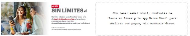 Es la imágen emergente que aparece al iniciar sesión en Banca en Línea, toda la imagen es un botón, así que siempre colocar de forma ilustrativa un CTA