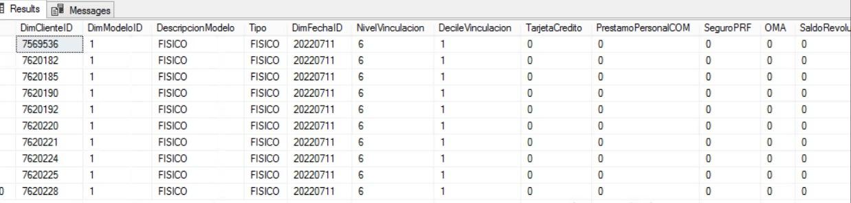 • Tabla en DWH SELECT * FROM DWH.[cxm].[Hec_ClientePerfil]