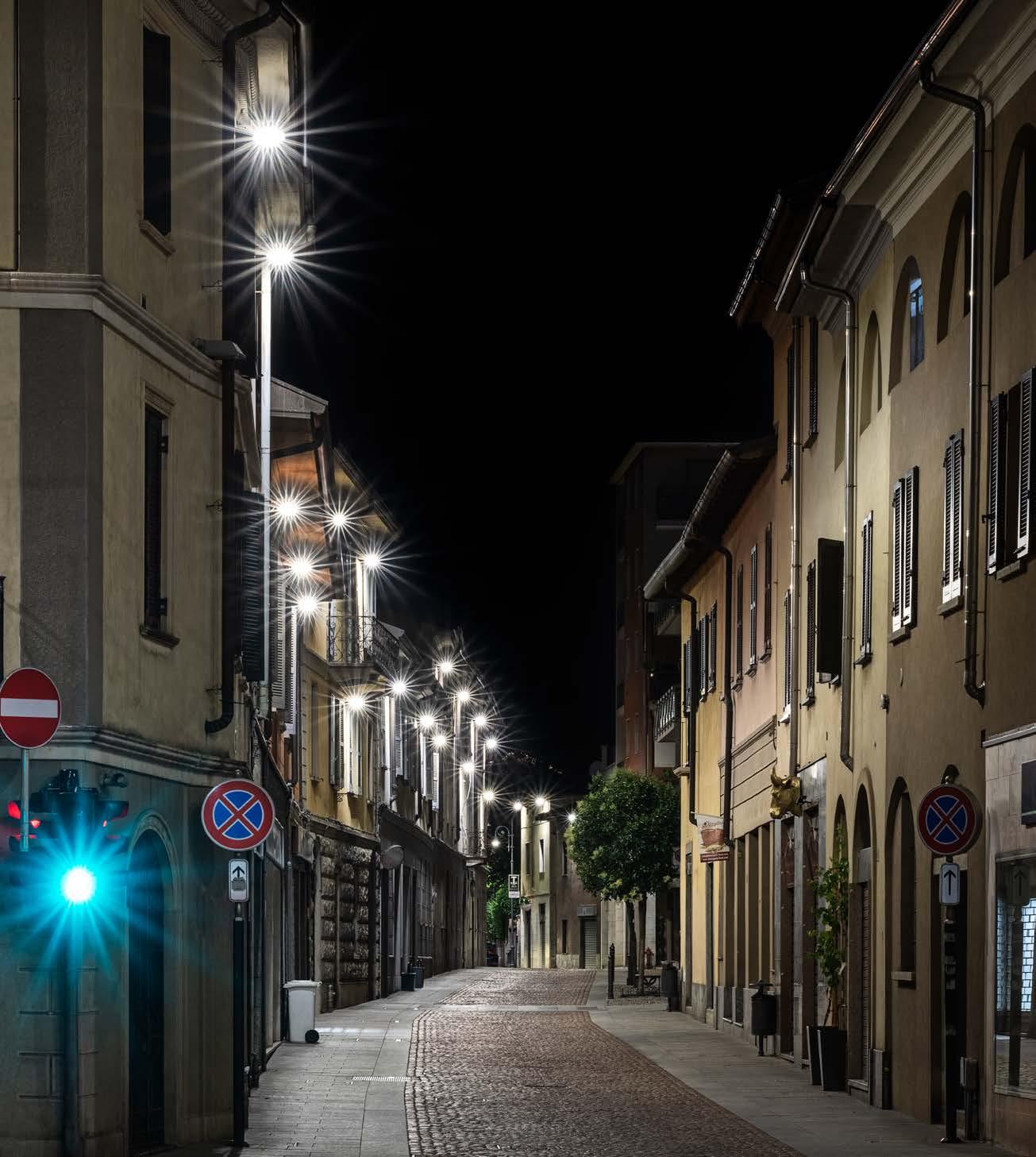 Sustituir los viejos equipos obsoletos y reducir el gasto público apoyando un entorno saludable son los principales retos que Cree Lighting ha aceptado para 3 ciudades: Módena, Cesena y Reggio Emilia. El objetivo era instalar un sistema de alumbrado sostenible para reducir los costes energéticos de los ayuntamientos, en cumplimiento de la normativa europea, preservando al mismo tiempo los centros históricos de las ciudades y creando un entorno moderno, seguro y acogedor para los residentes.